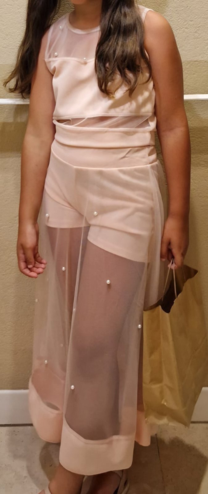 Set oblečenia: top a sukňa s všitými kraťasami, kúpené v Taliansku, oblečené max. 5x, top stav, možnosť nosiť aj samostatne, veľkosť 140, cena 20 €.
