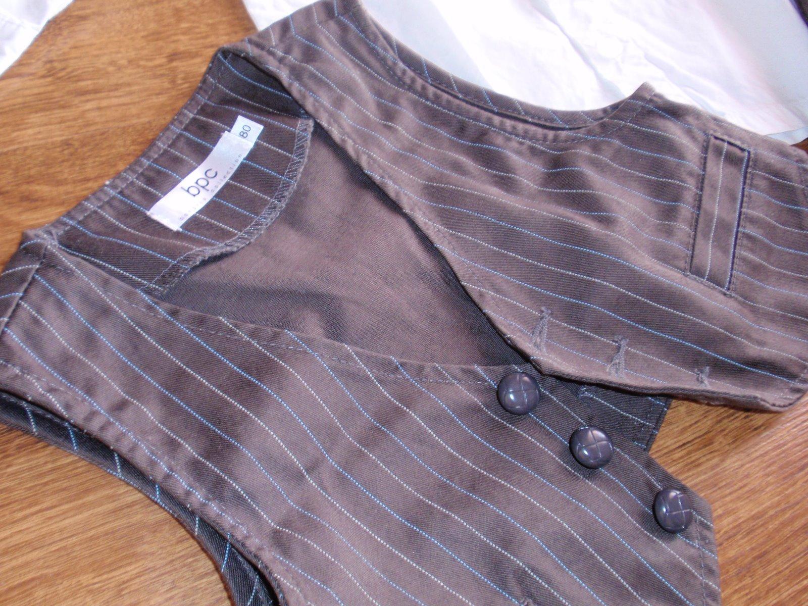 Slávnostný set - Nohavice, košeľa, vesta. Značka BPC z Bonprixu. Hnedá farba s jemnými pásikami bledohnedej a slabomodrej farby. Použitý 2x. Skor na jar, leto, jeseň. Za 9e plus pošta. Osobný odber PU a PB po dohode.