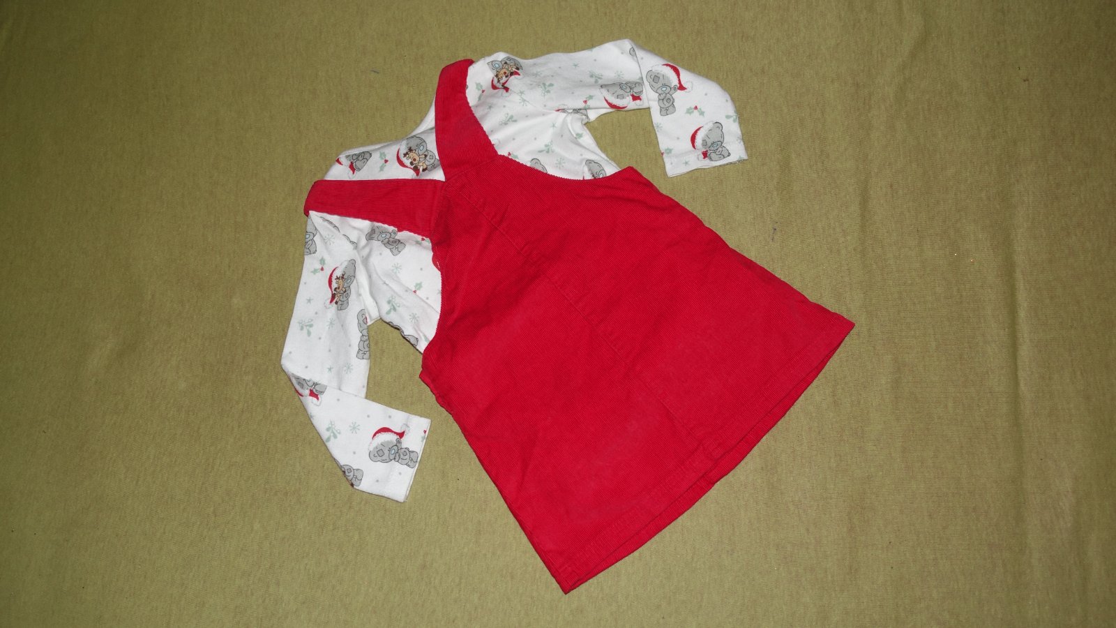 ROZMERY: tricko: dlzka rukavu od krku: 32cm, rukav od pleca: 27cm, celkova dlzka od pleca: 32cm, sirka pod pazuskami: 27cm; saty: celkova dlzka od pleca: 40cm, sirka v pase: 24cm