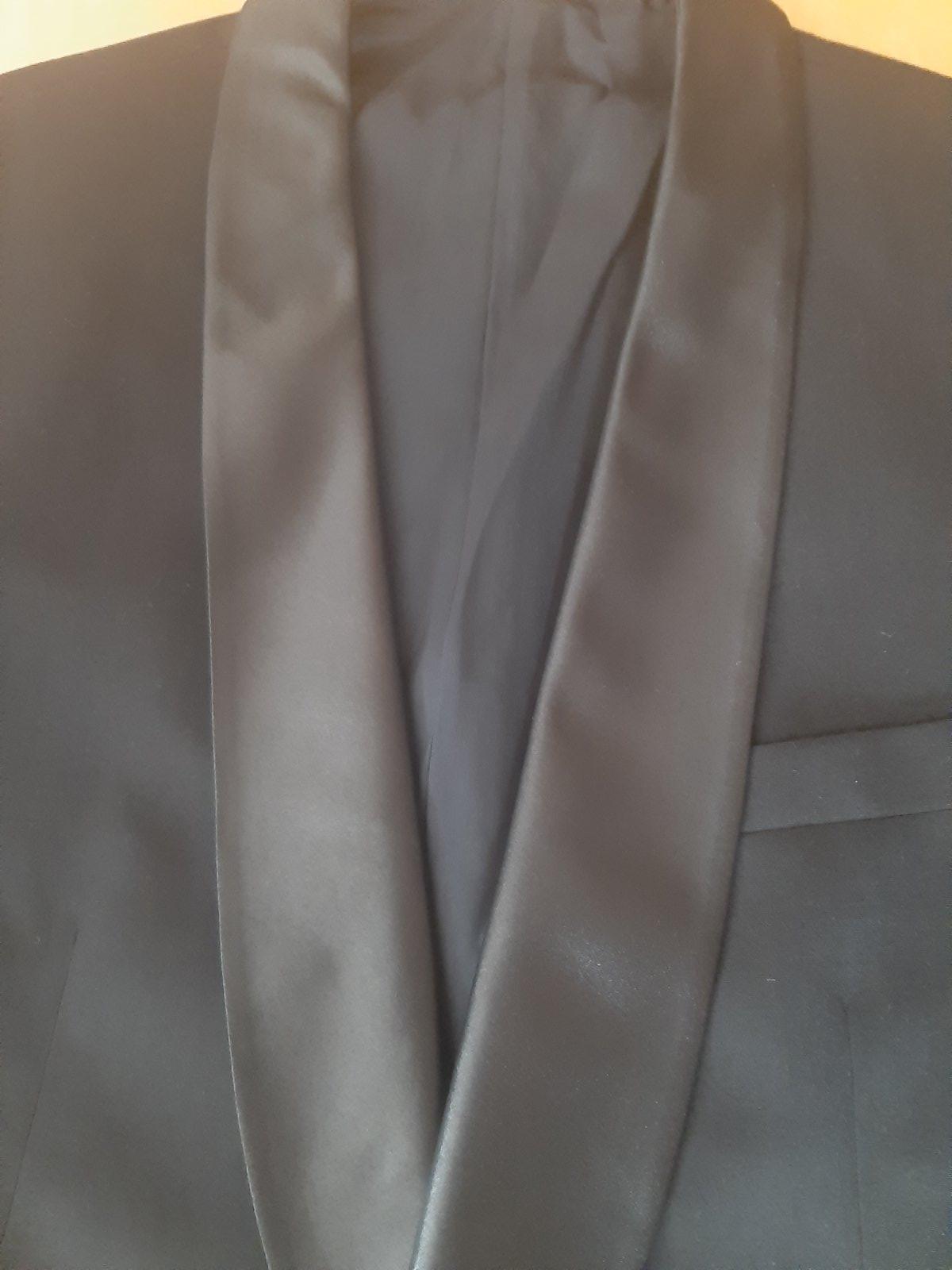 Smoking bol veľmi málo nosený. Veľmi dobrý stav. Zloženie a miery v galérii fotiek. Je vhodný pre pánov i pre dorast.