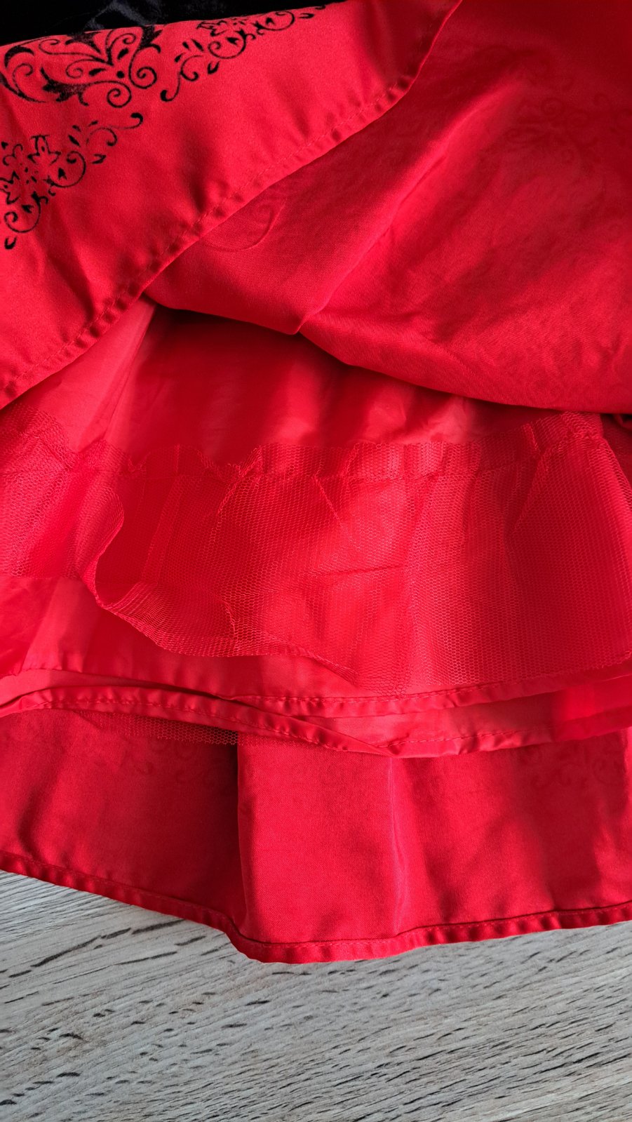 Veľkosť 80, pouzite 2x na chvilku a z toho raz na fotenie, hore zamatove a dole hrubsi saten so spodnickou a zamatovou potlacou na sukni
