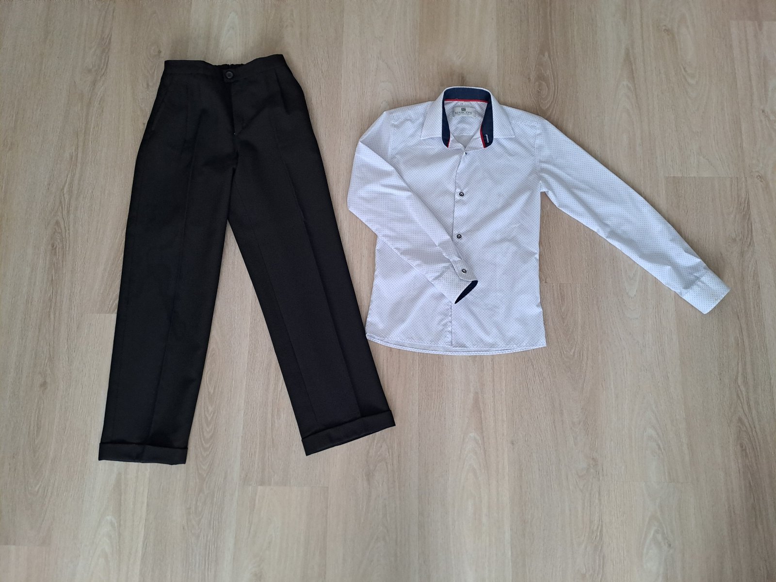 Slávnostné chlapčenské oblečenie vhodné na svatbu alebo 1. sväté prijímanie, veľkosť 146, bez poškodení, bez fľakov, nohavice sa dajú ešte spustiť.