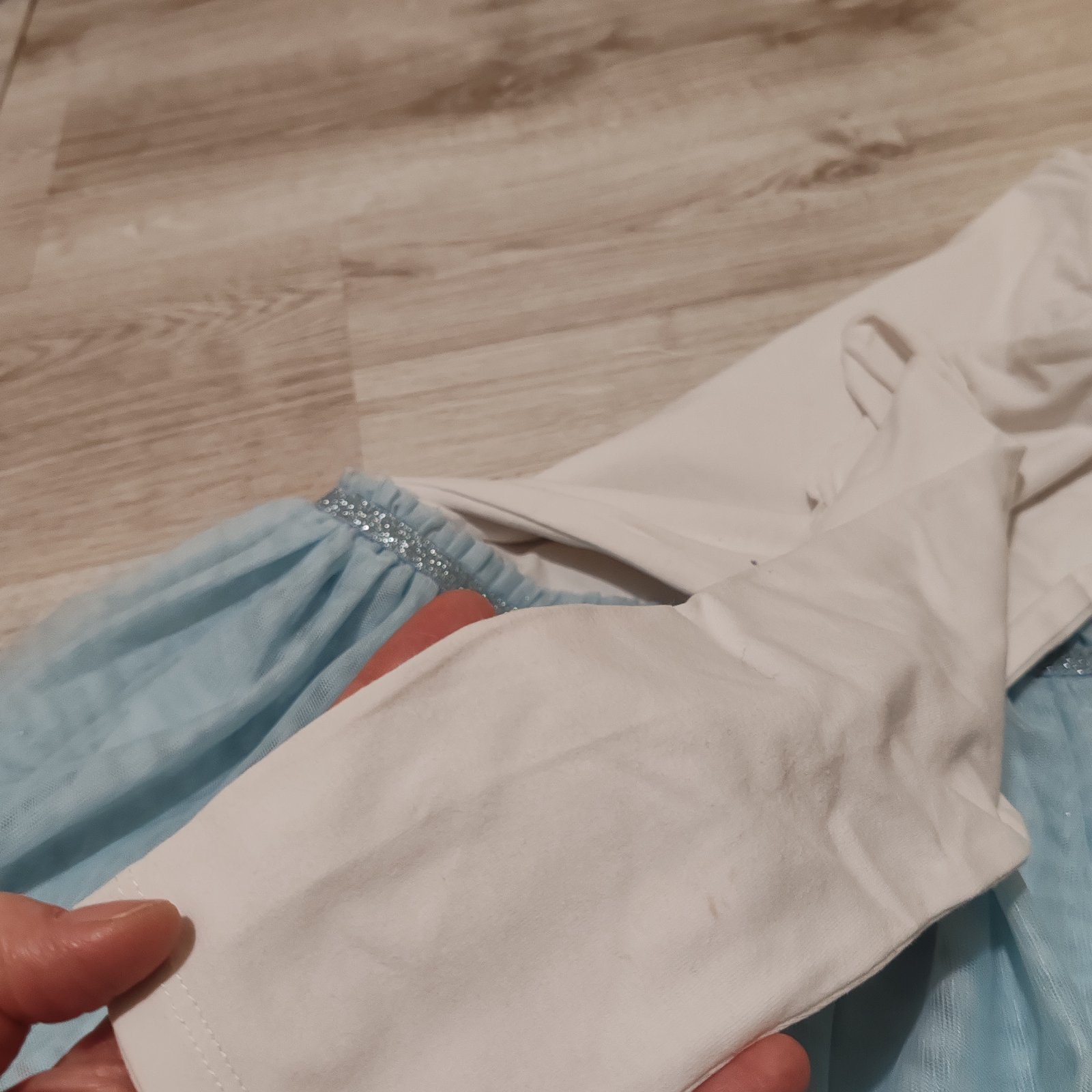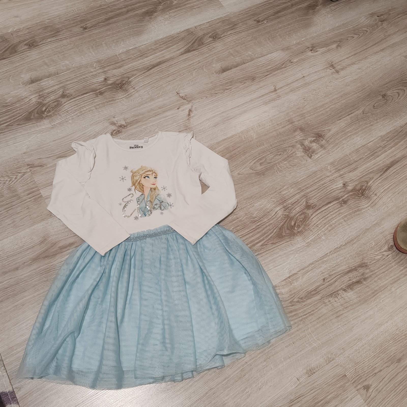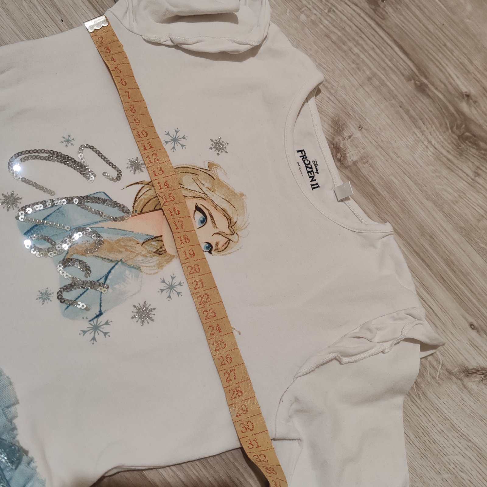 Elsa, Frozen šaty aj na vianoce, alebo na bežné nosenie. Veľkosť 116, rozmery na fotkách. Na poslednej fotke nafotený malilinký fliačik. Nič hrozné.