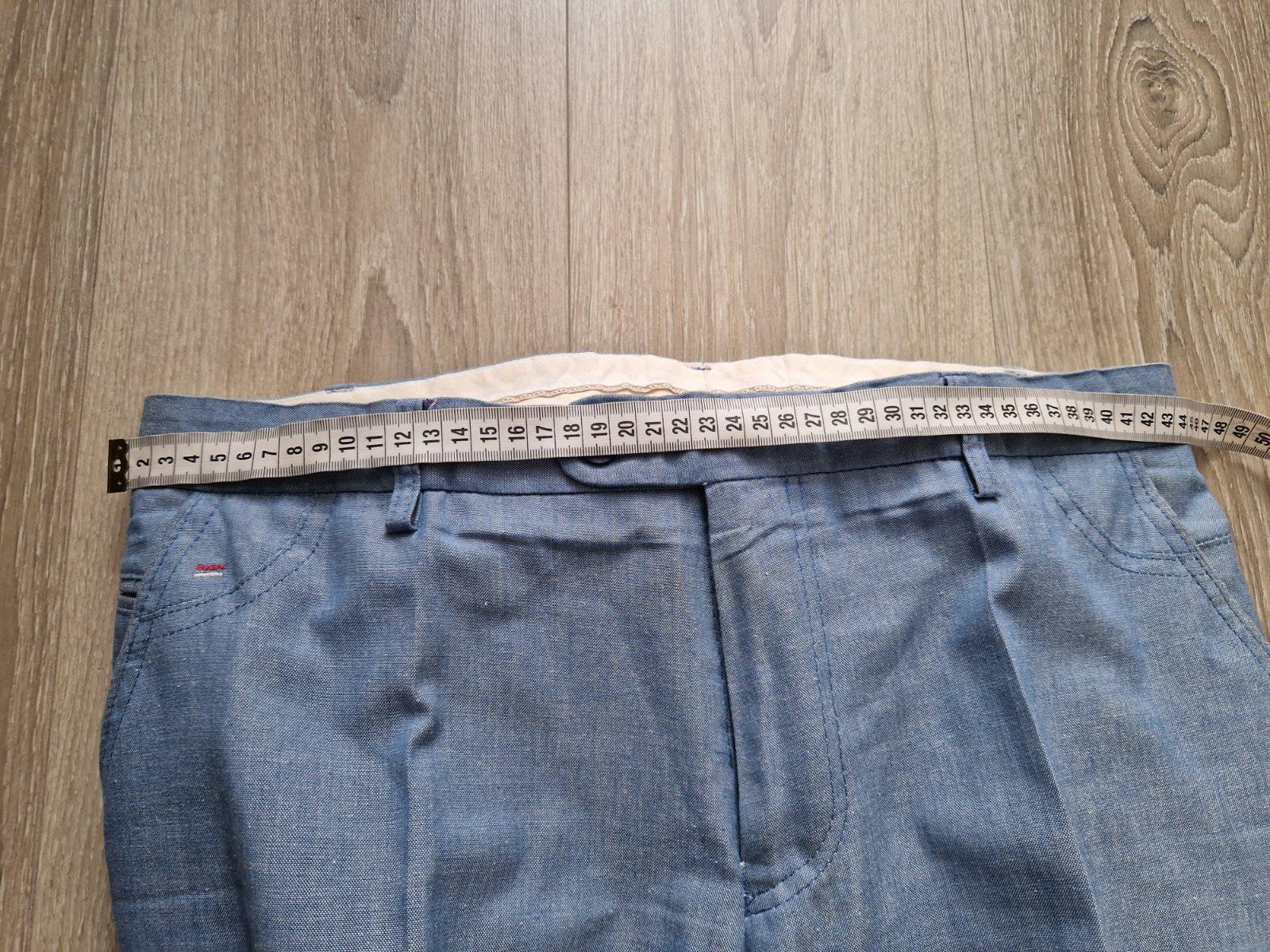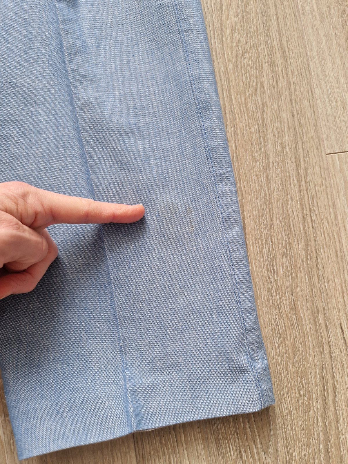 Na spodnej časti nohavic jemný slabo viditeľný fliacik