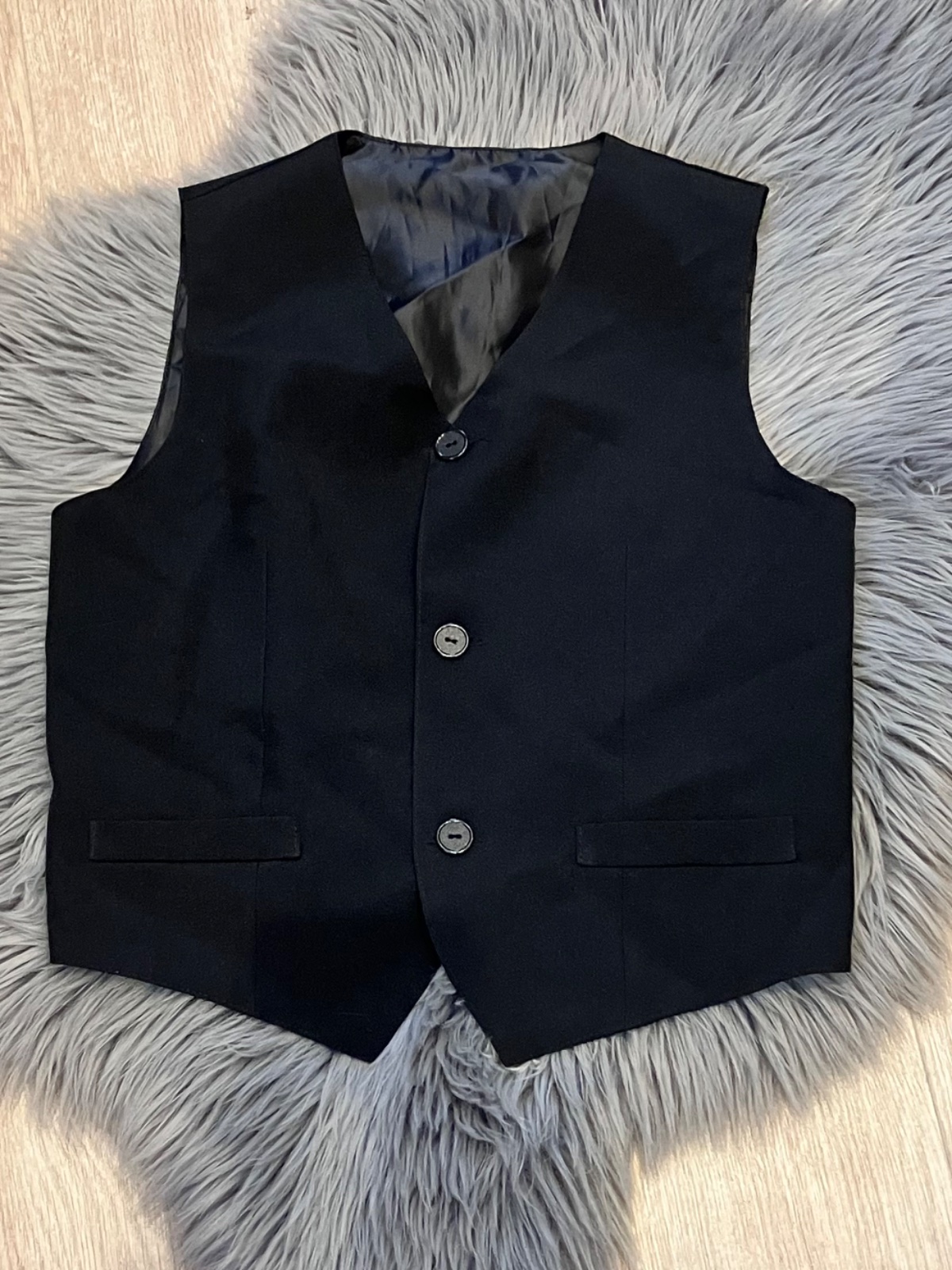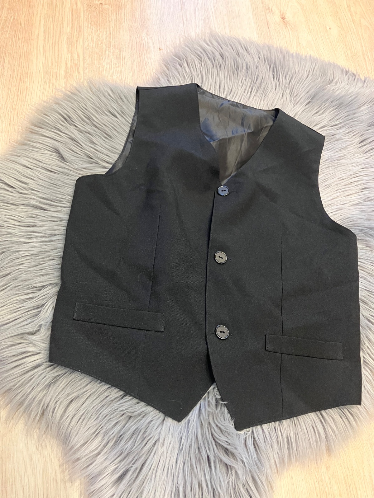 Chlapčenská elegantná vesta, čierna, zapínanie na gombíky, jemne elastická, materiál 100%polyester.