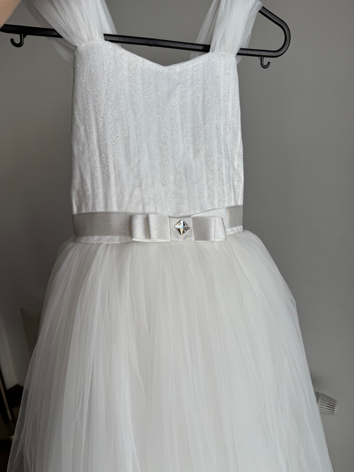 Predám tieto krásne princeznovské šaty na prvé sväté prijímanie. Na fotkách sú bez kruhu, ktorý doplní ich krásu. Na dĺžku majú šaty od ramien po zem cca 120cm, s kruhom je to o pár cm menej.