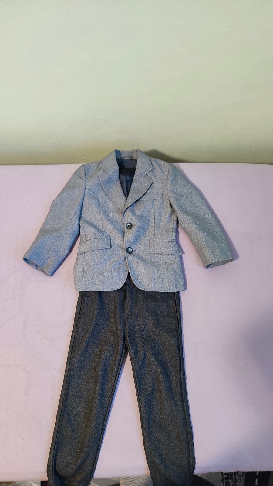 Predám tento oblek, sako teplákové veľkosť uvedená 116 ale sedí aj na 110, má minižmolky. Košeľa oblečená 2x, veľkosť 110. Nohavice veľkosť 110, majú jemné minižmolky. Sako a nohavice majú trošku i...