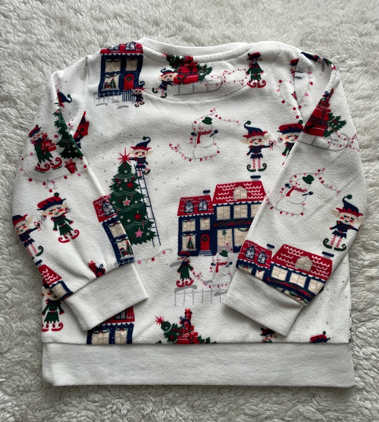 Makkucka plysova suprava s motivom Vianoc, velkost 98/104, raz oblecena, bez poskodeni