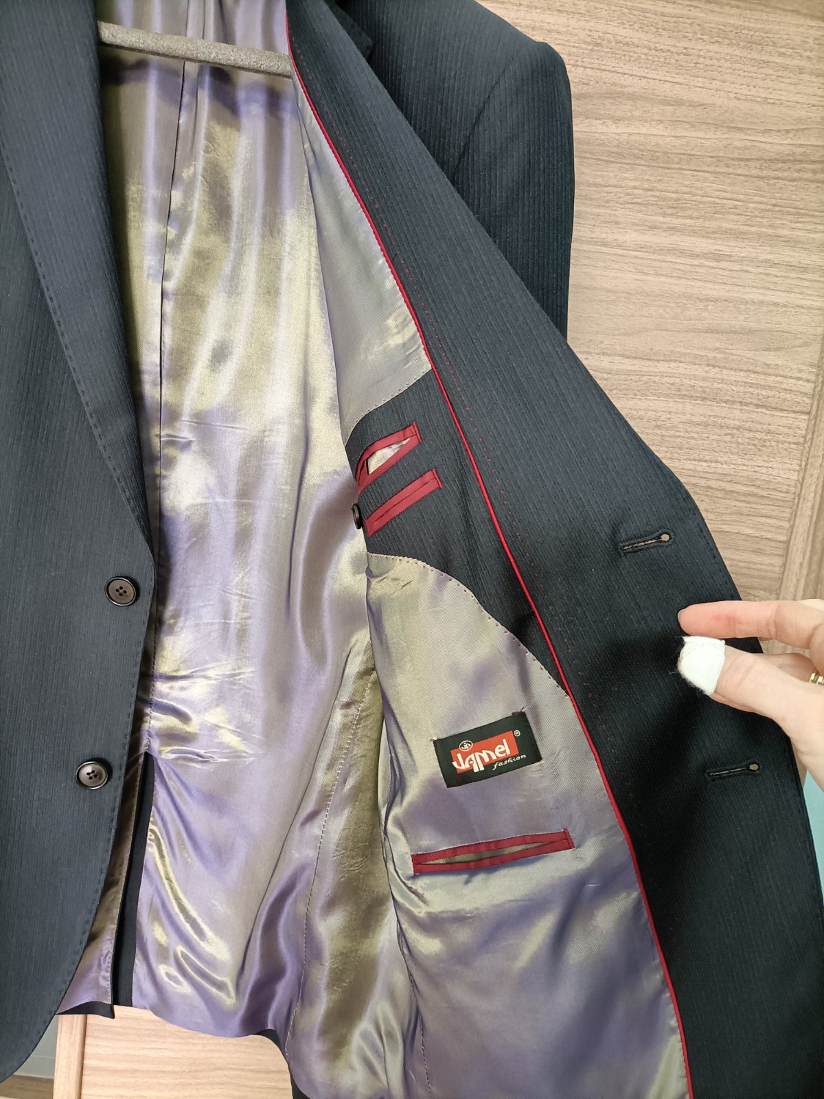 Luxusný pánsky oblek tmavomodrej farby, štrukturovany material,zapíanie na gombíky, vypracované do detailov,vrecka ešte zašite.67%apre,30%royal,3%elastan.bol oblečeny par hodin,je novy len bez visa...