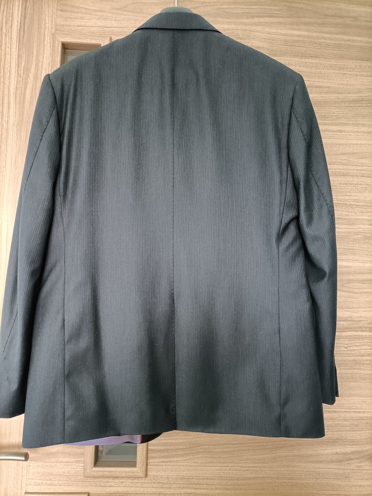 Predám tmavomodrý pánsky oblek, oblečený len raz na svadbu, jemný prúžkovaný vzor, farba tmavá tmavomodrá, top stav