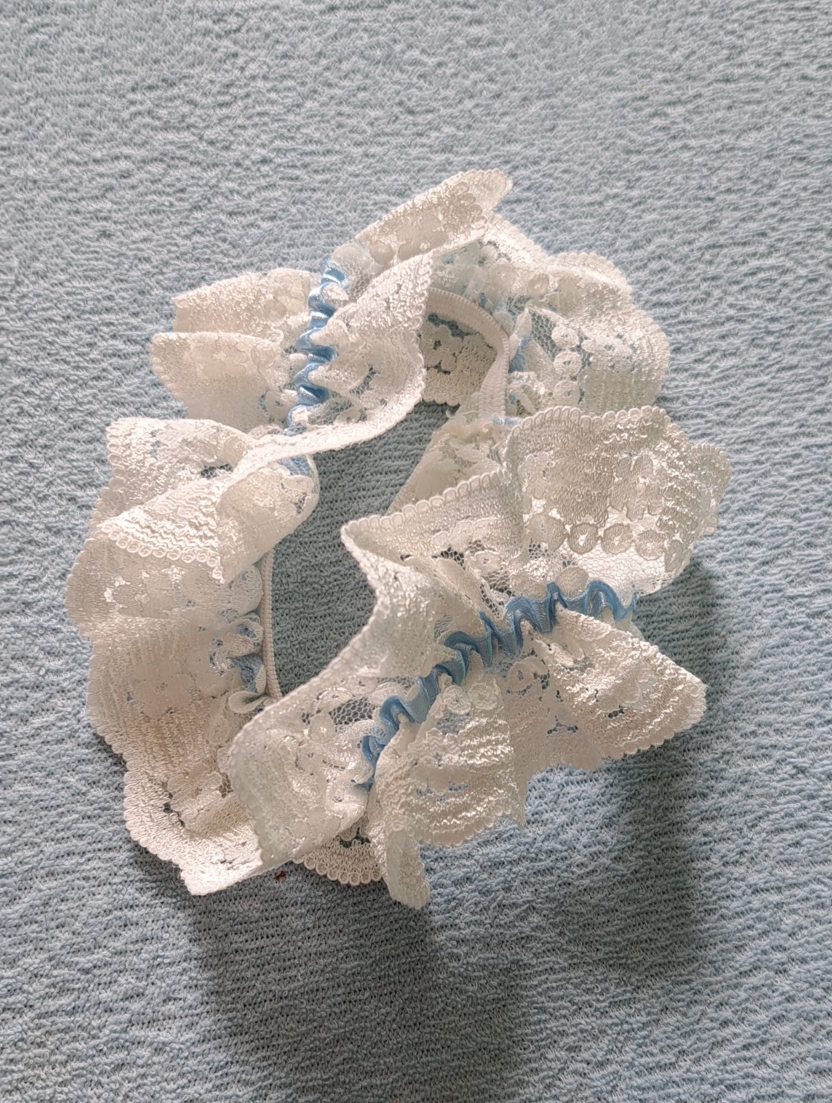Farba je Ivory. Závoj s tenkým pruzkom som mala použitý len počas obradu. Čipkovaný nie je doslova závoj so sponkou ale dá sa tiež tak použiť. Je to veľký štvorec alebo skôr obdĺžnik olemovany - 3...