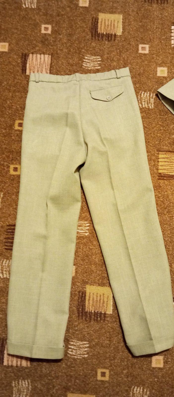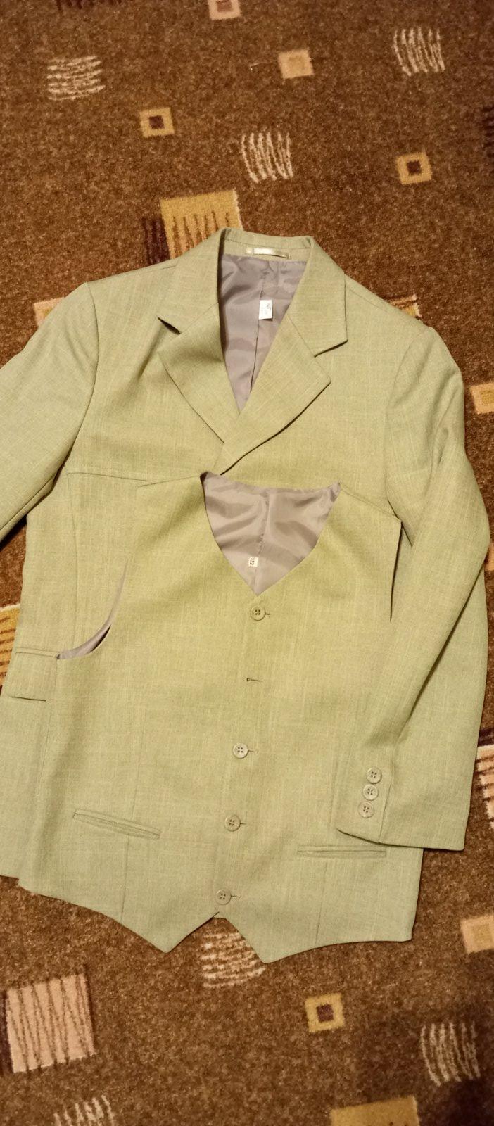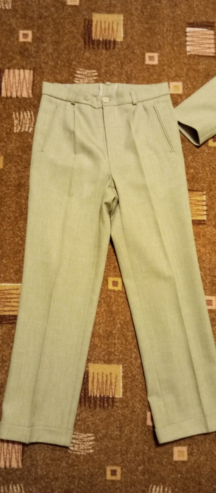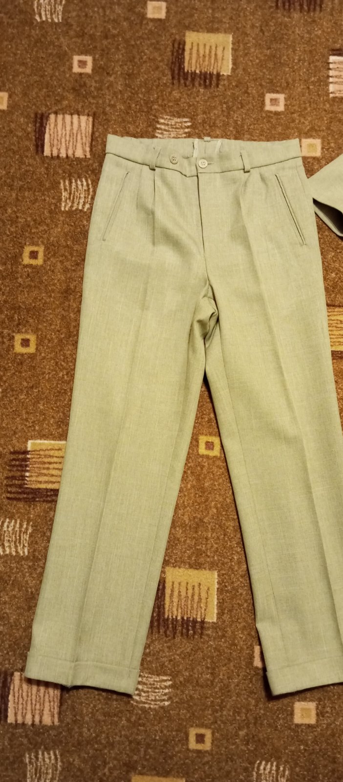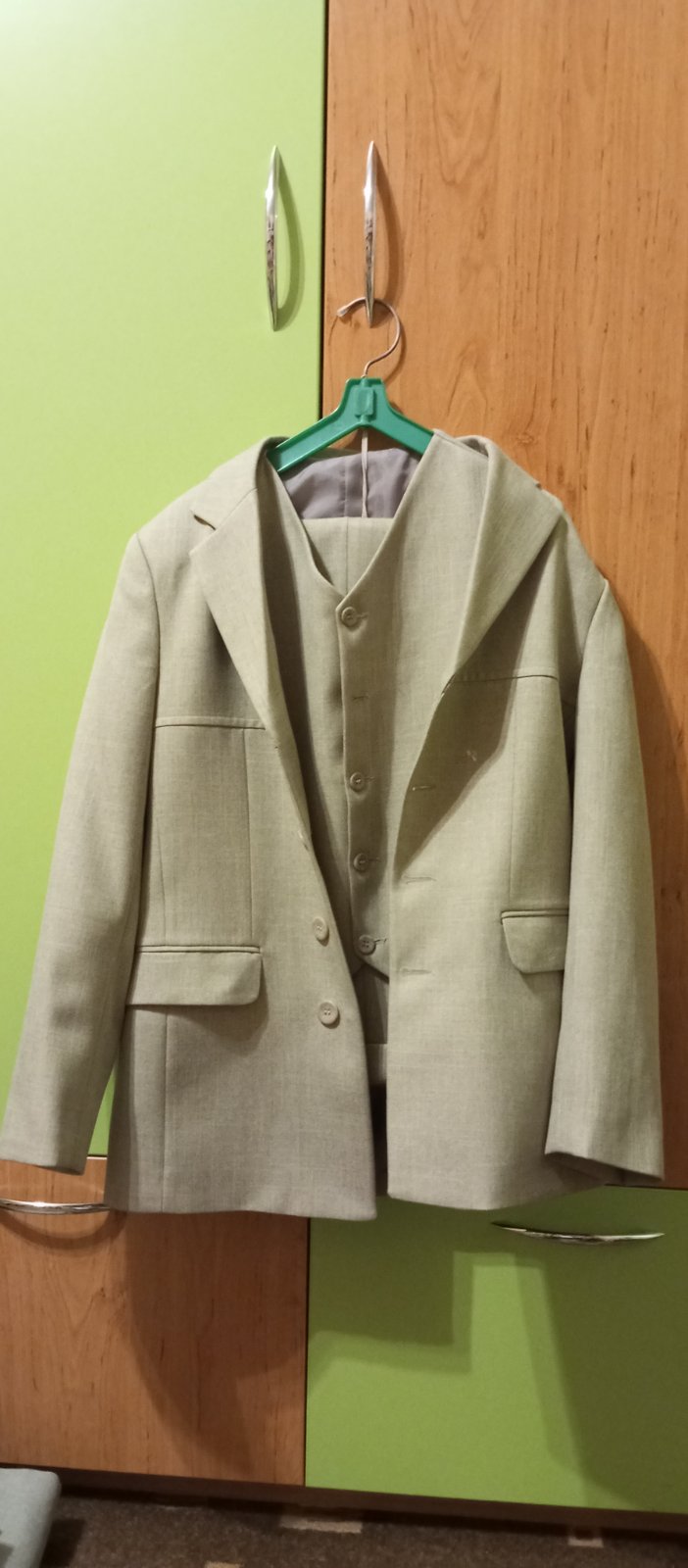 Predám krásny chlapčenský oblek (sako, vesta, nohavice). Veľkosť asi 152. Sako: šírka ramien 36cm, obvod pod pazuchami 88cm, dĺžka saka 68cm, dĺžka rukáva 54cm, vesta: šírka ramien 28cm, šírka pod pazuchami 80cm, dĺžka 48cm, nohavice: obvod v páse 72cm, obvod bokov 108 cm, dĺžka nohavíc 90cm