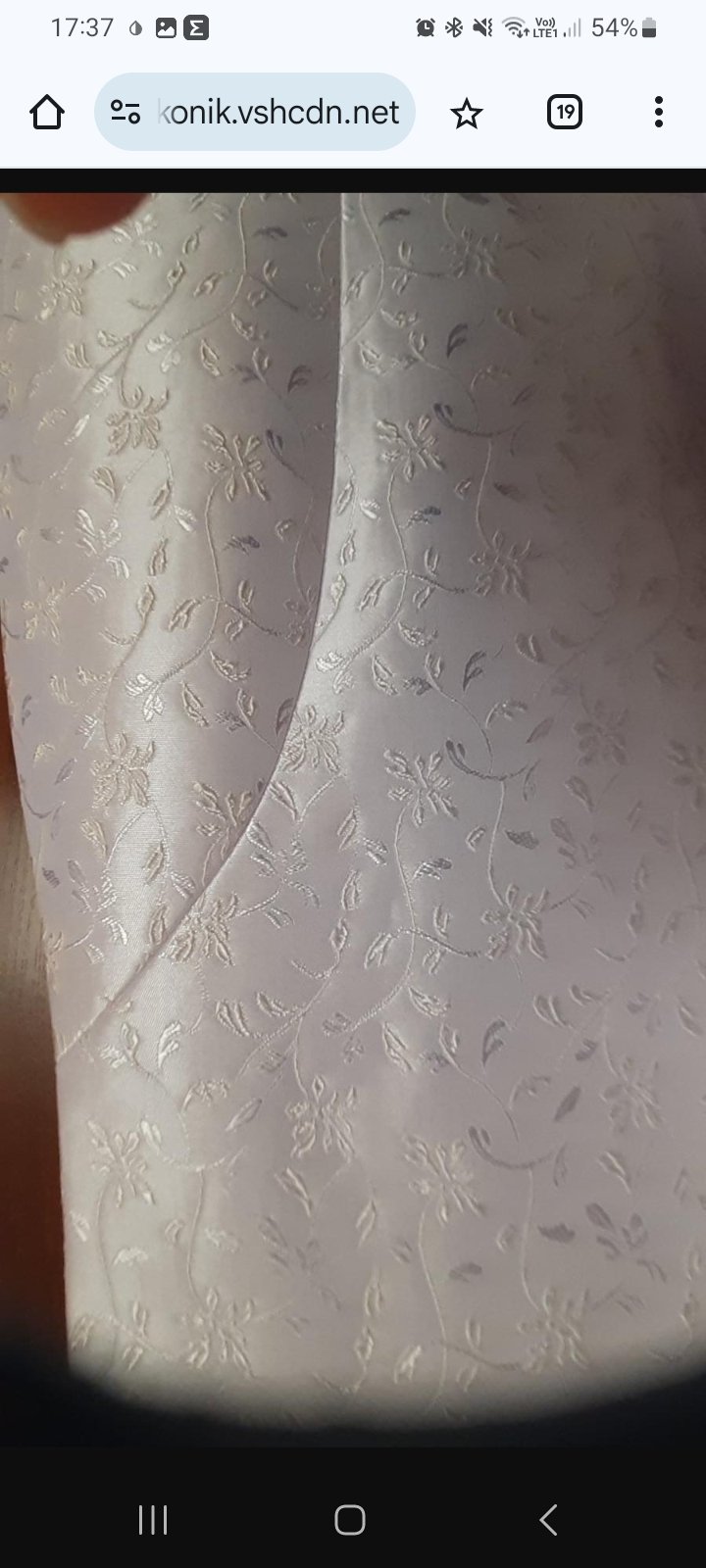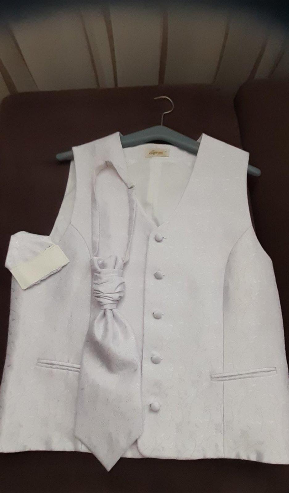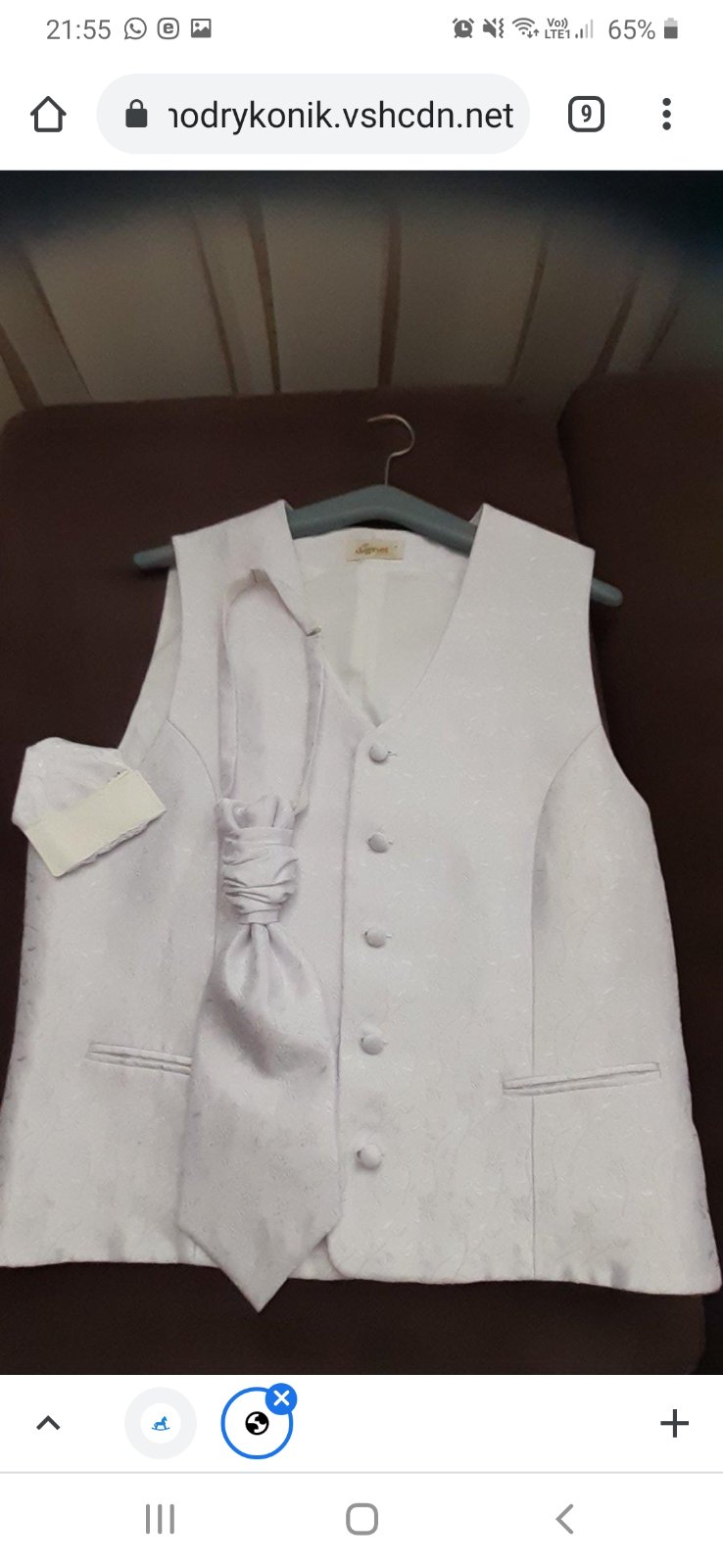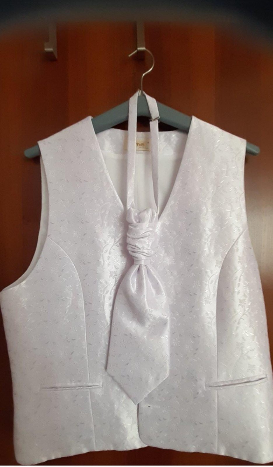 Výborný stav, vesta bola vycistena v cistiarni, neposkodene, raz pouzite, dlzka vesty 60cm, sirka pod pazami 50cm, viazanka sa da nastavit.Krasny vzor, farba je taka ziarivo biela.cena plus posta