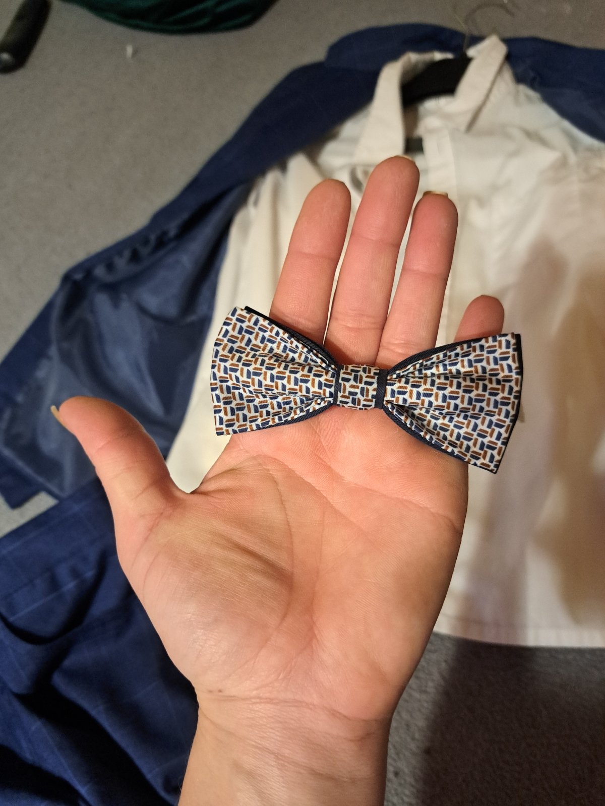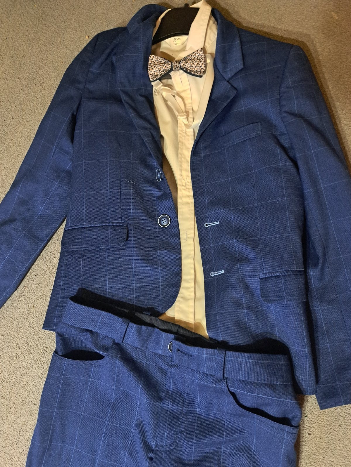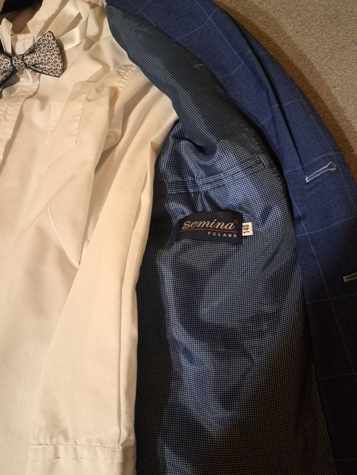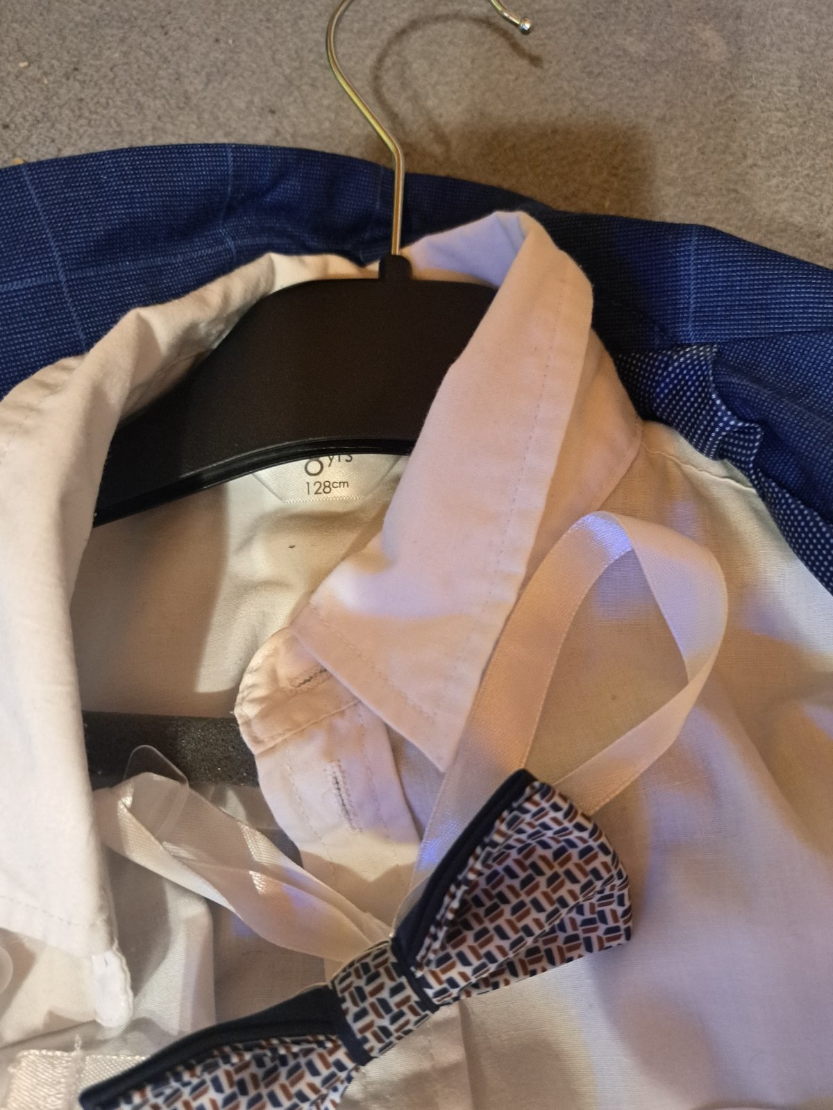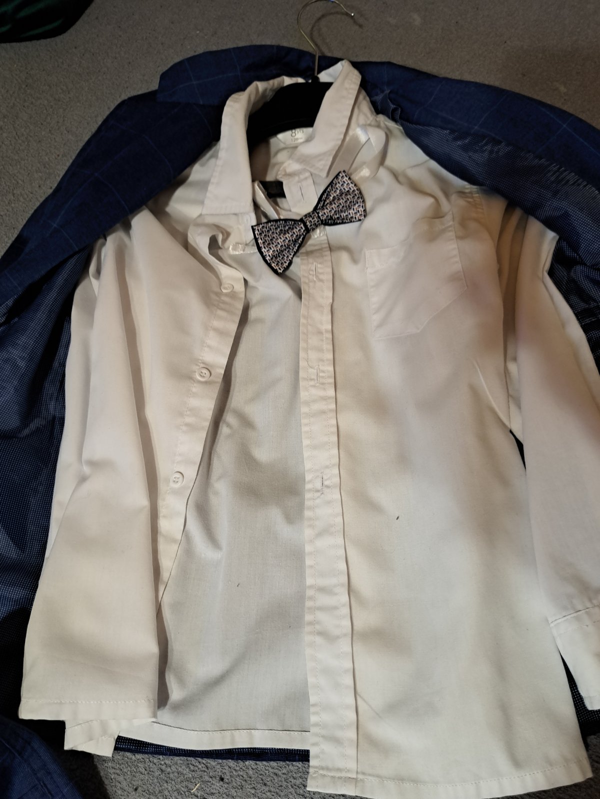 Kúpený v butiku za 100e. Košeľa: uvádzaná veľkosť 128, ale je väčšia čo môžete vidieť aj na foto.