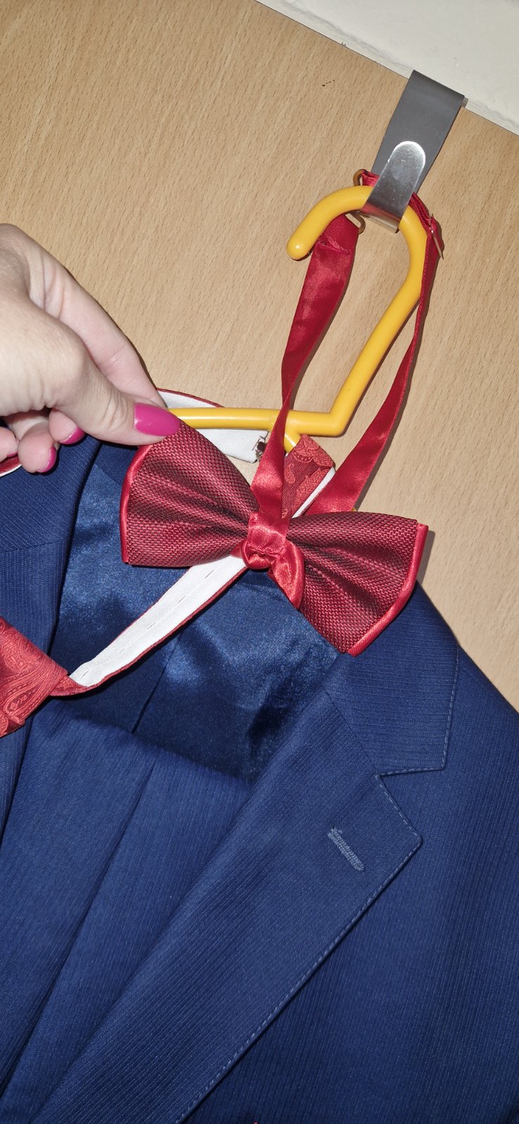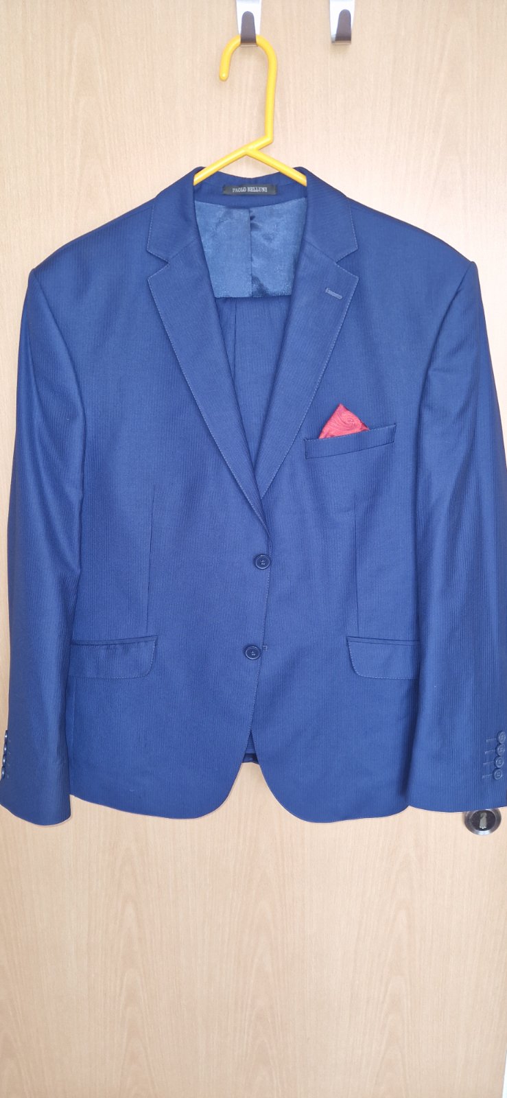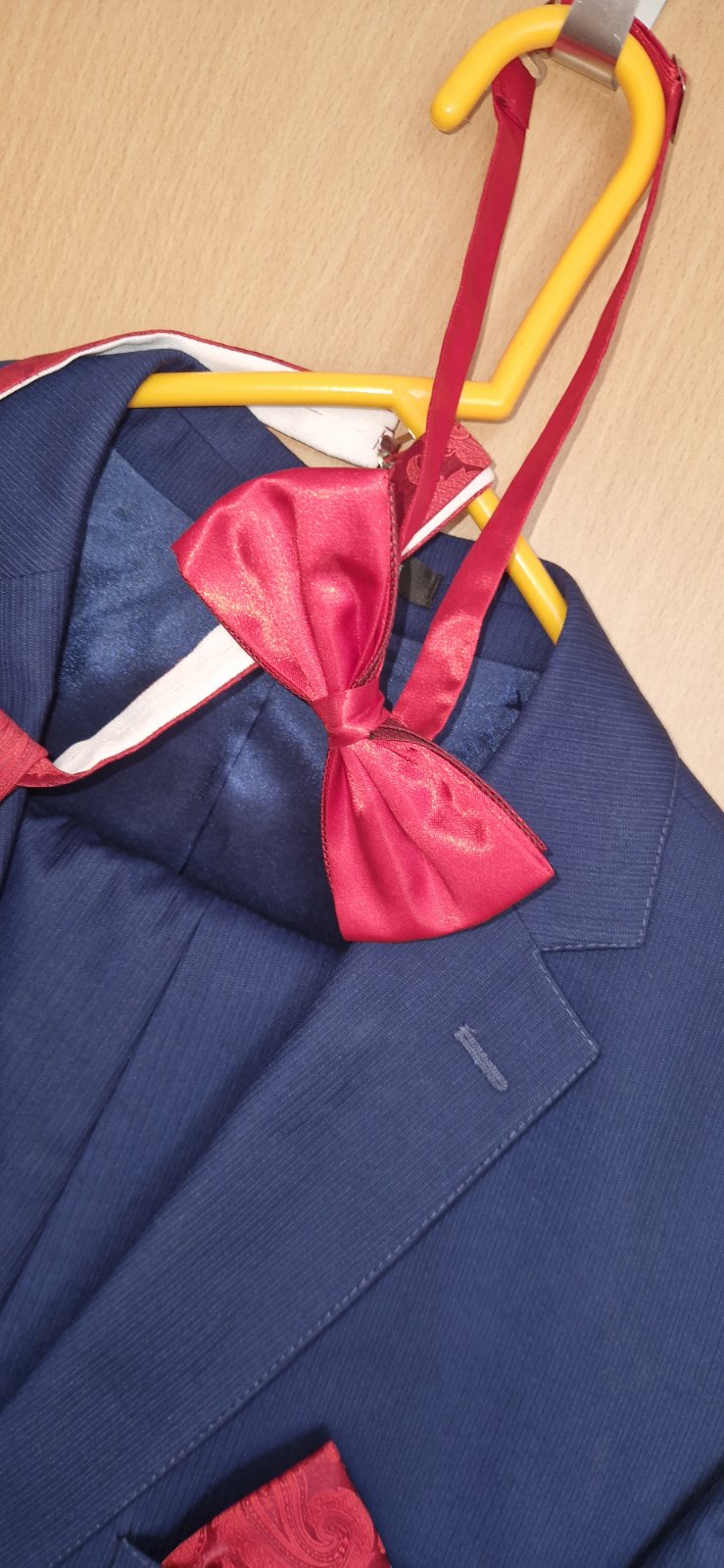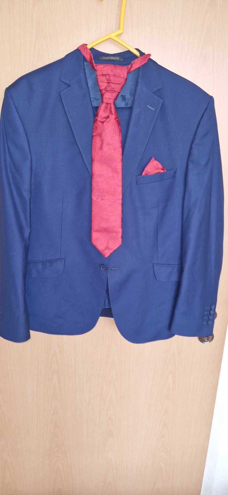 1x oblečený nohavice dĺžka 103,5cm pas šírka 2x46,5cm sako dĺžka rukáva 66cm šírka cez hrud 56cn celková dĺžka meraný chrbát 66cm