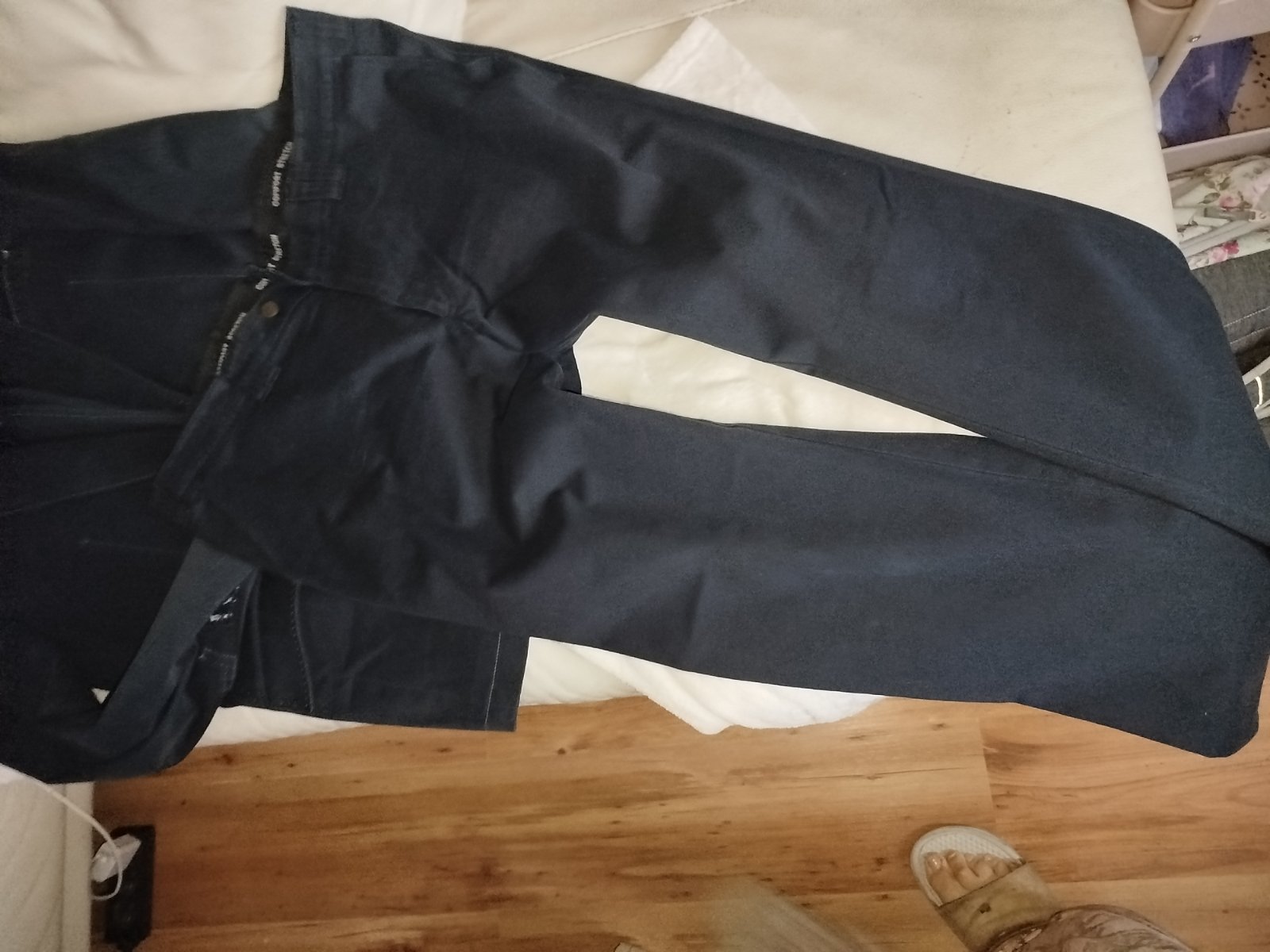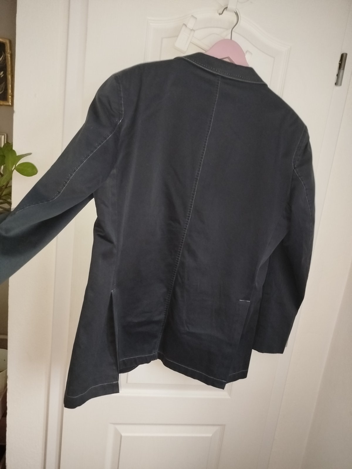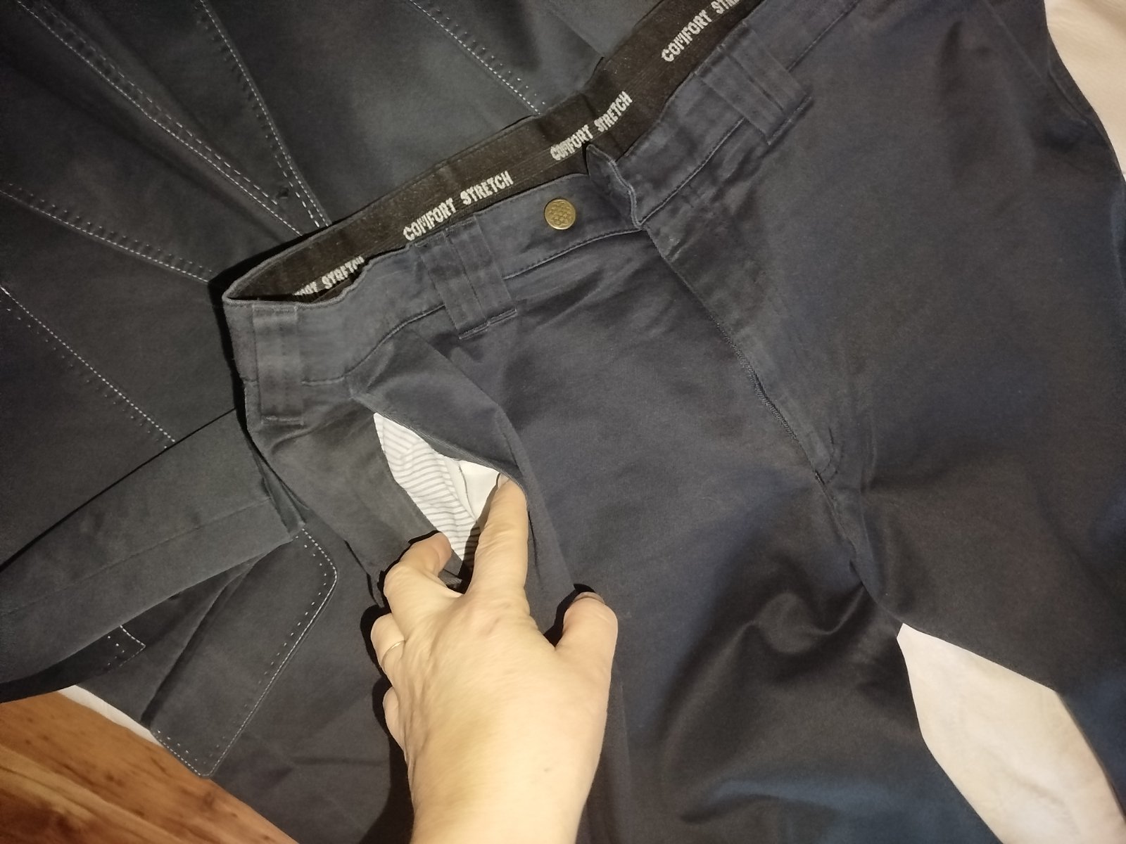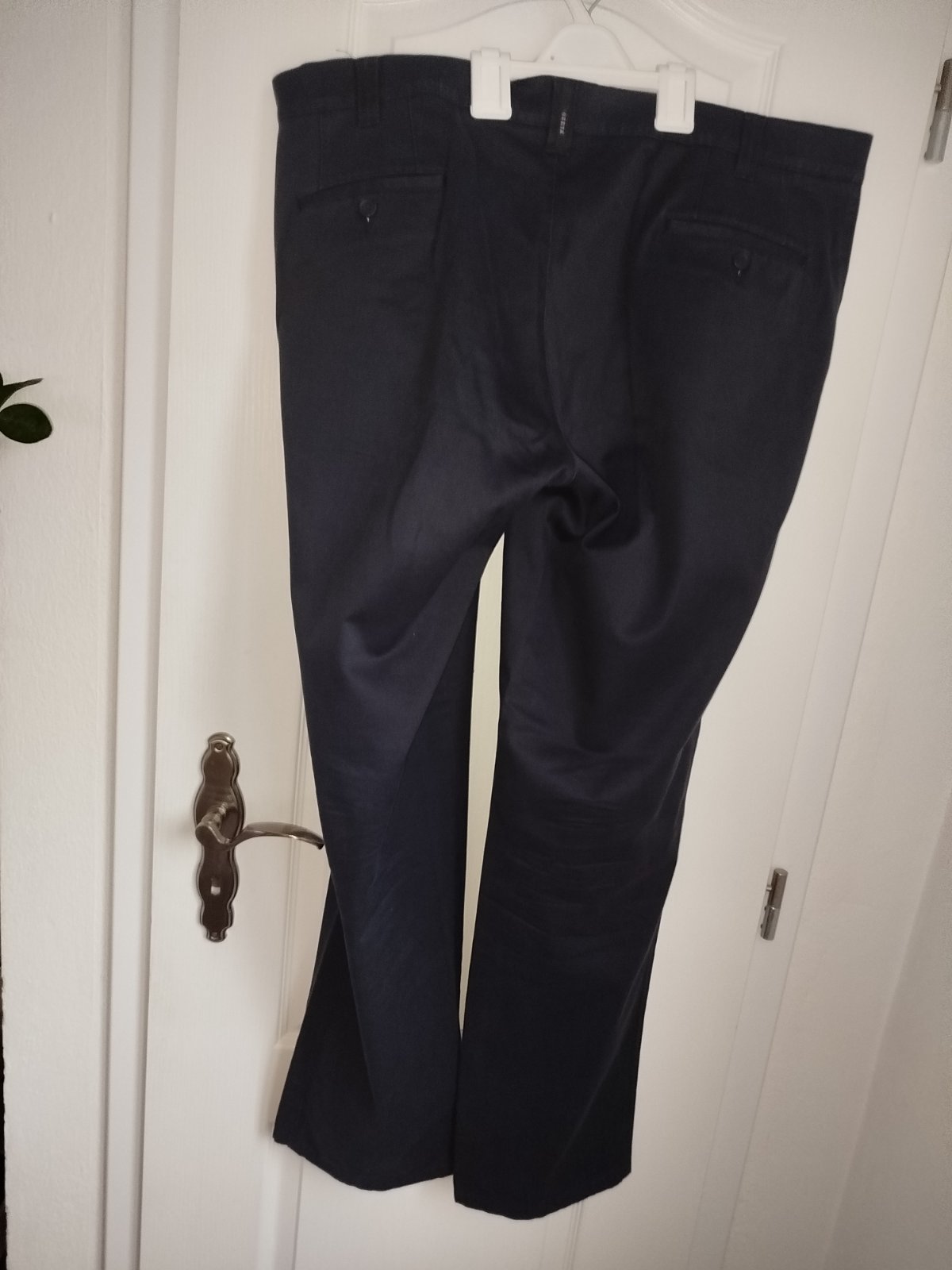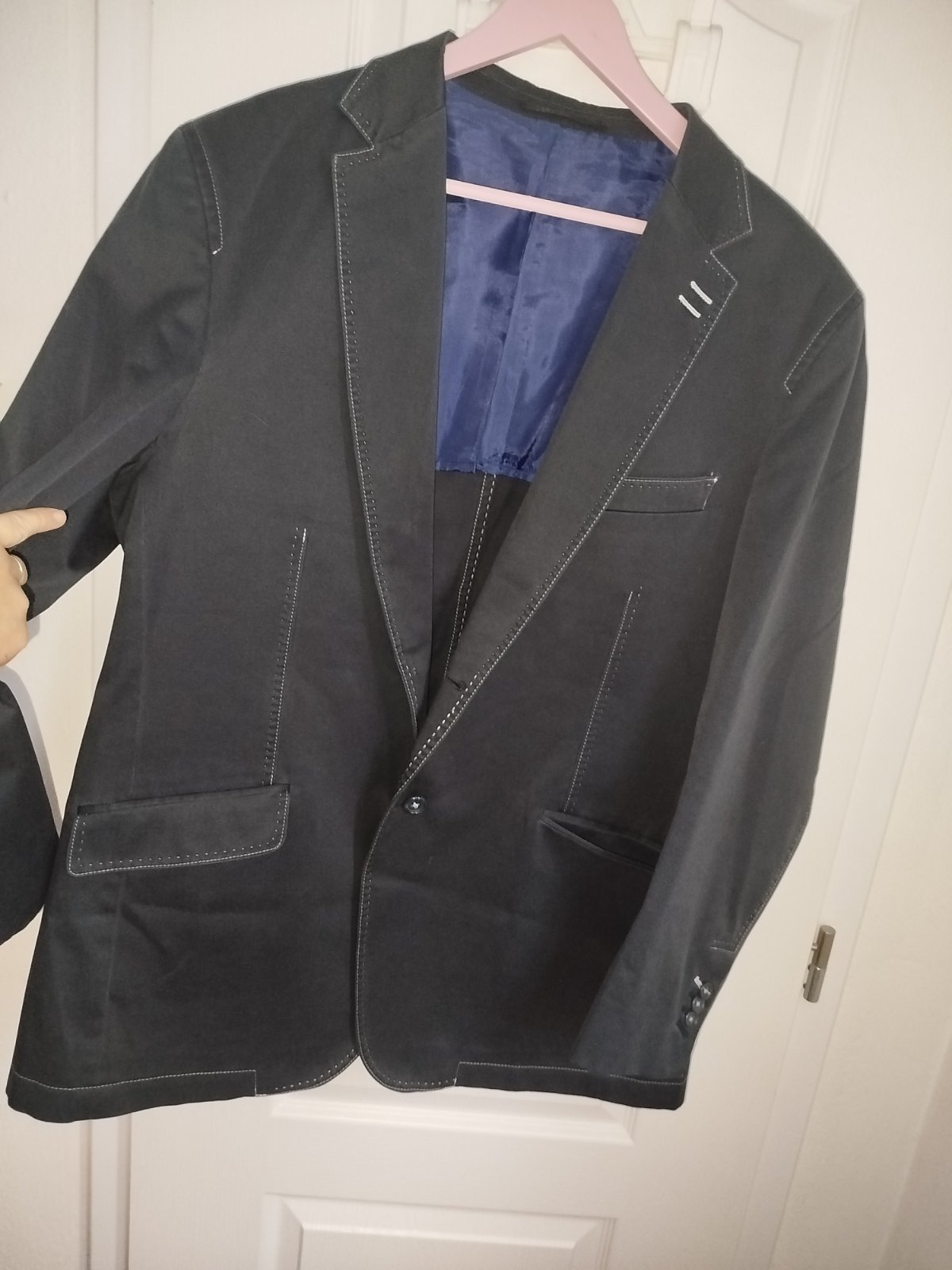 Kvalitné značkové sako a nohavice značky Ozeta farba je tmavomodrá až do ciernosiva nohavice majú zvnútra pohodlný pružný pás dĺžka 110cm pás v kľude 52x2cm povolí cca 54x2cm boky 60/64x2cm,sedy 27/45cm.Sako vzadu dvojrazporok dĺžka 81cm, šírka pod pazuchami 62x2cm,pás 58x2cm,rukáv 65cm+15cm rameno,ramená od seba 51cm,rameno rukav pod pazuchami merané 21x2cm