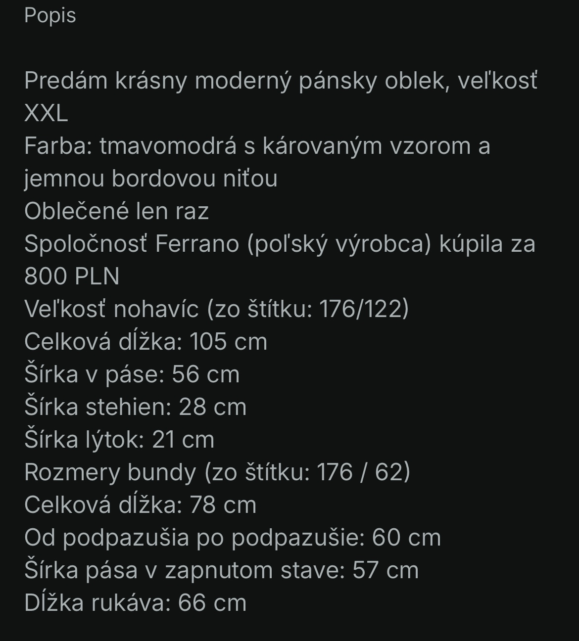 Ak máte vážny záujem o danú vec, rezervujte si ju čo najrýchlejšie. Otázky (premeranie, detail. foto...) ohľadom vecí neberiem ako rezerváciu a uprednostním záujemcu, ktorý má okamžitý záujem.