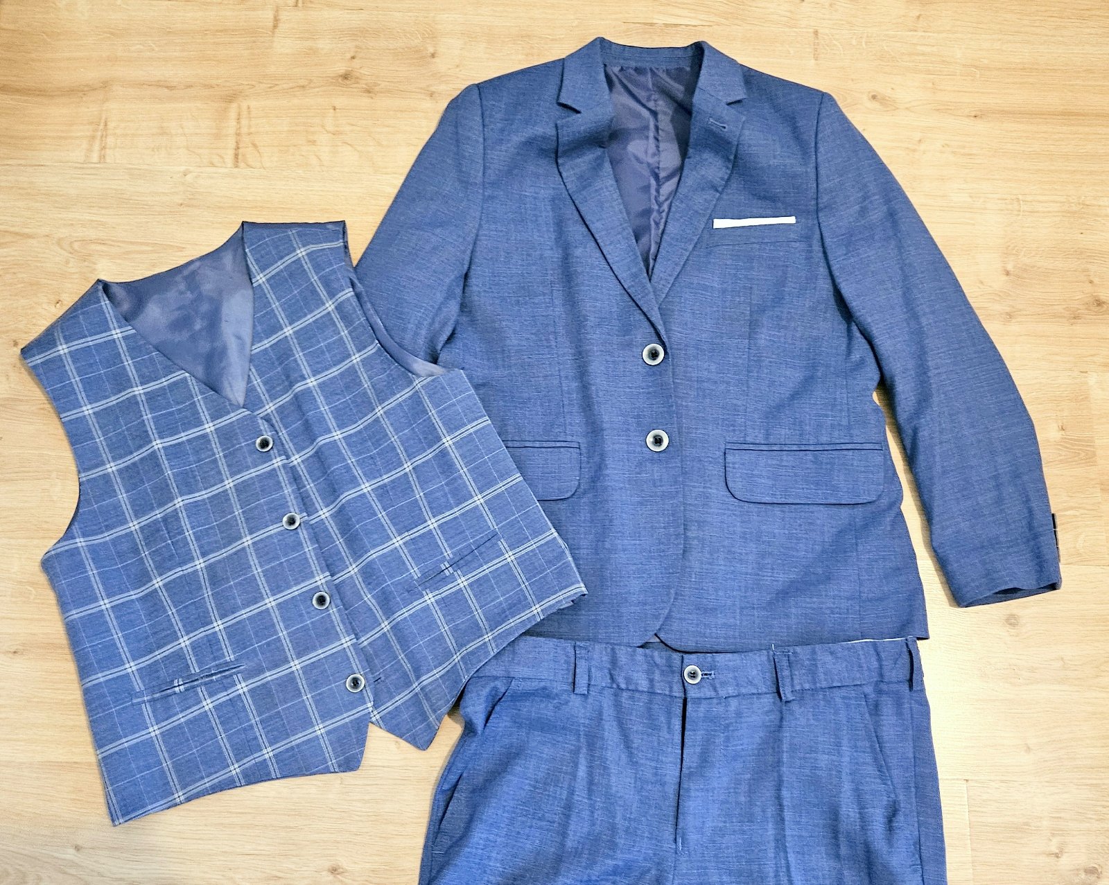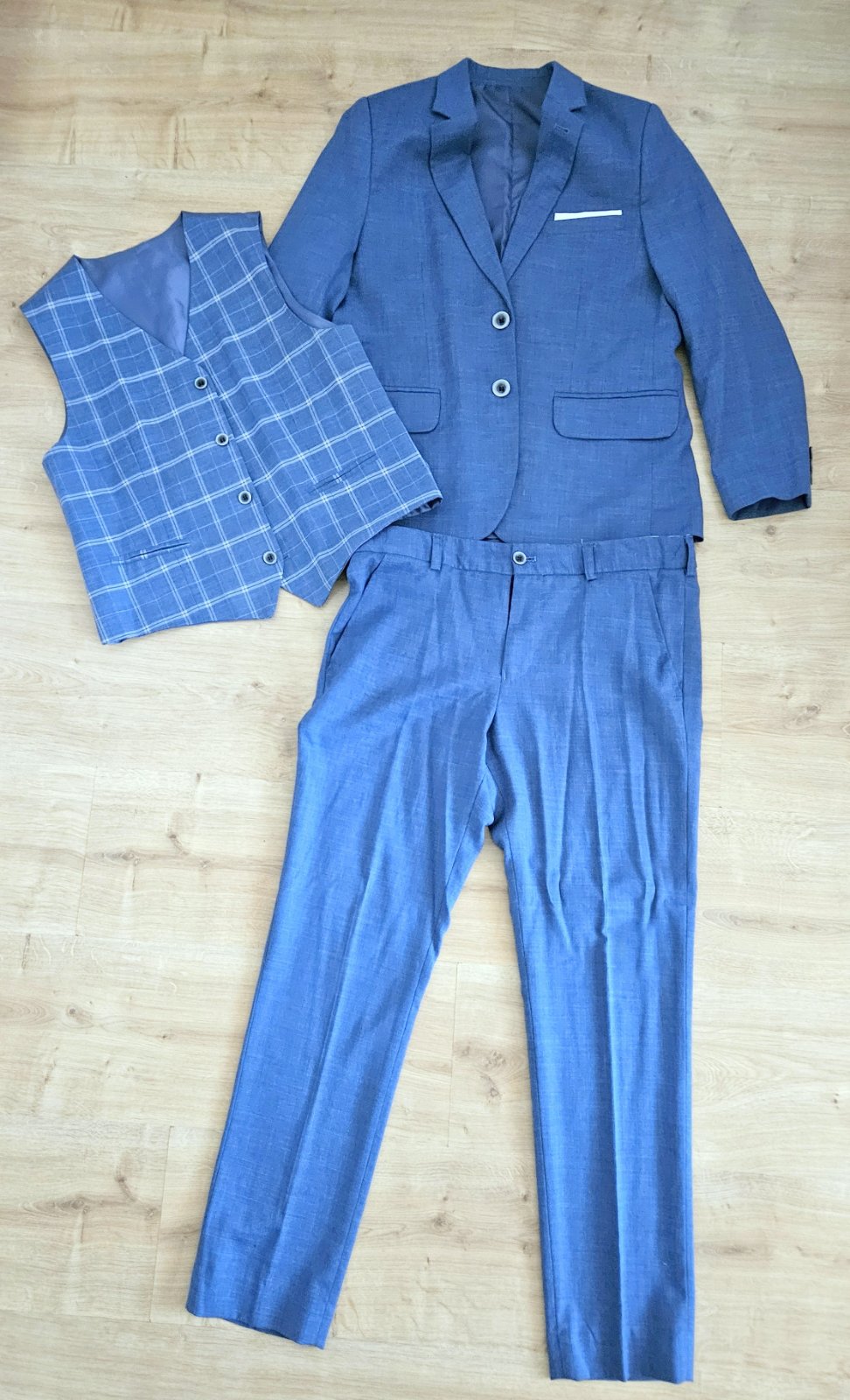 sako, vestička, nohavice, ktoré sa dajú okolo pása regulovať