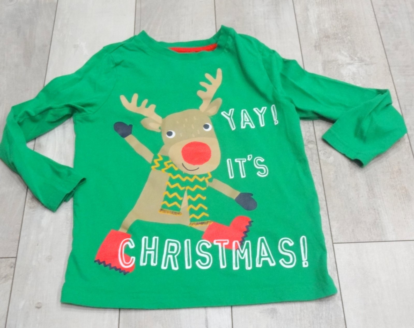 Vianočné tričko Christmas so sobom (sobíkom) *** vo výbornom stave *** značka: F&F *** veľ. 116 - dlžka 46 cm, šírka 33 cm