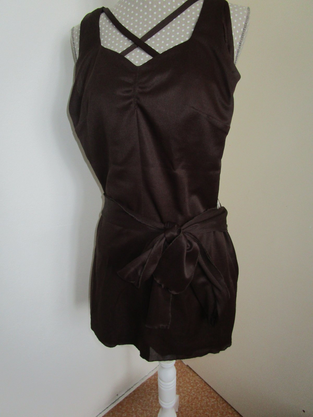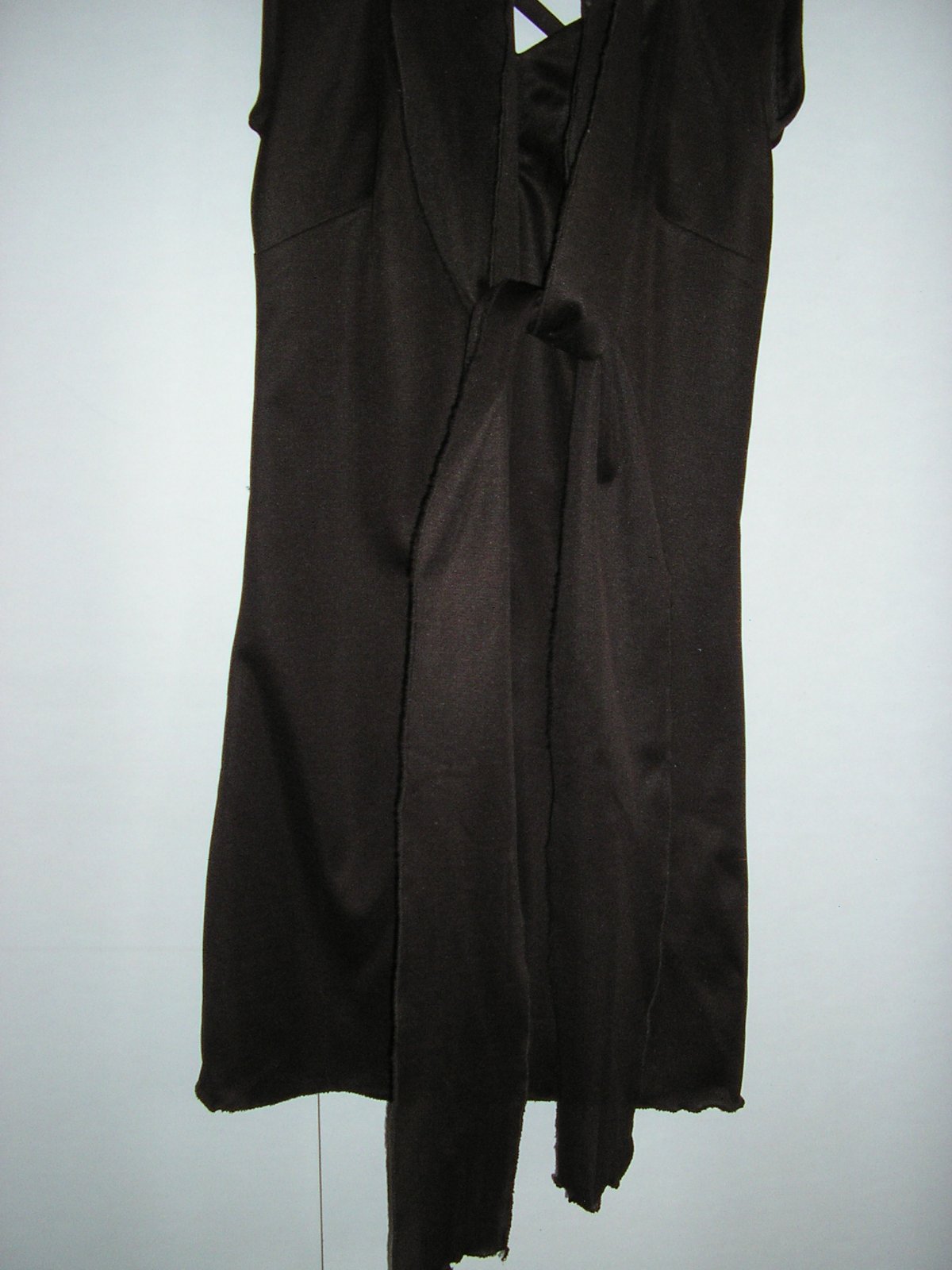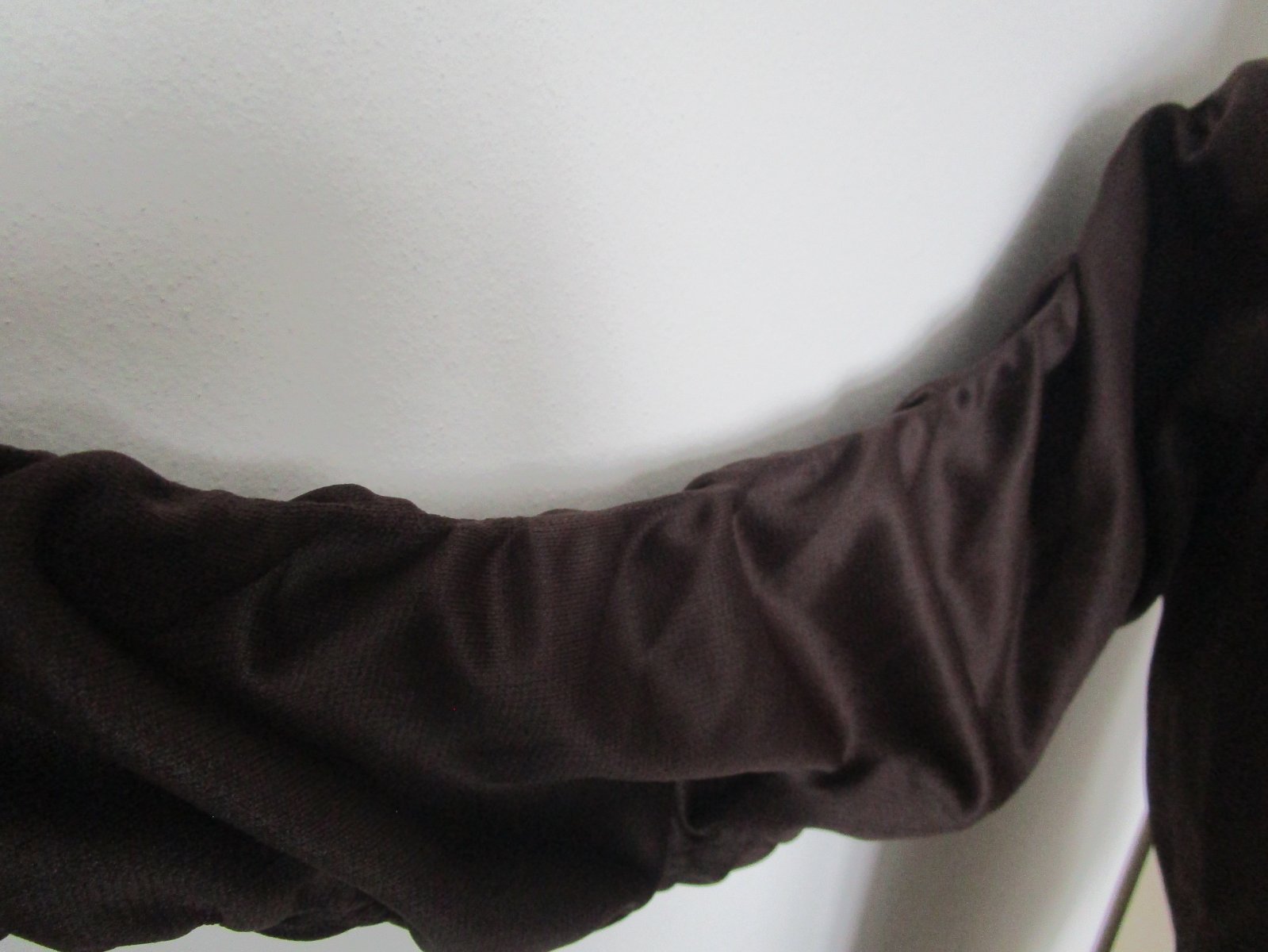 Čokoládovo hnedé šaty sú šité na mieru z mierne elastického, vzdušného materiálu. Male zatiahnutie.