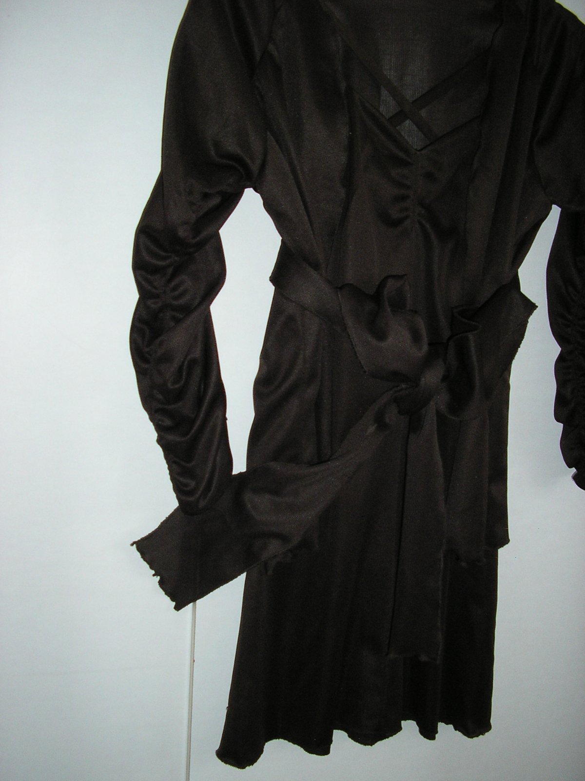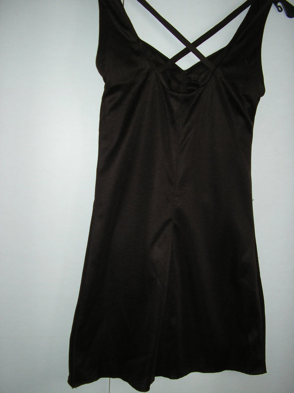 Šaty: Na ramienka, vzadu prekrížené pásiky. Šité zo 4 dielov, mierne rozšírené. Boli zúžené. Pre štíhle ženy, ani na figurínu sa neddakú obliecť.