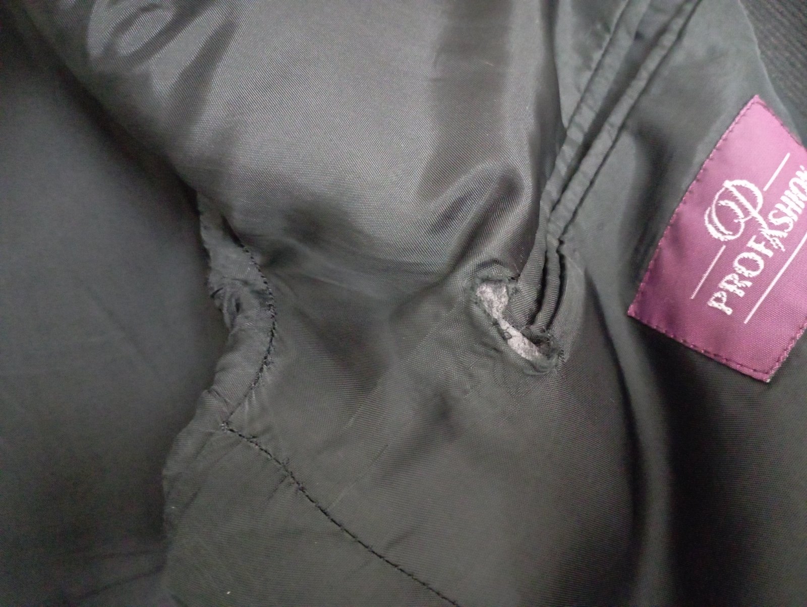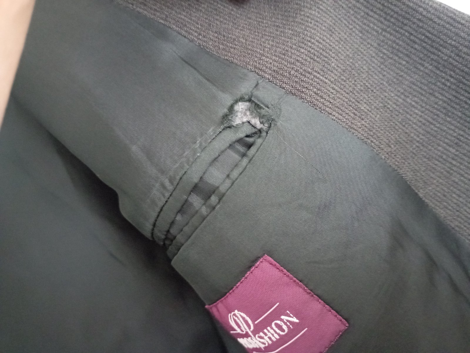*boky vnútorného vrecka saka sú natrhnuté (nafotené)