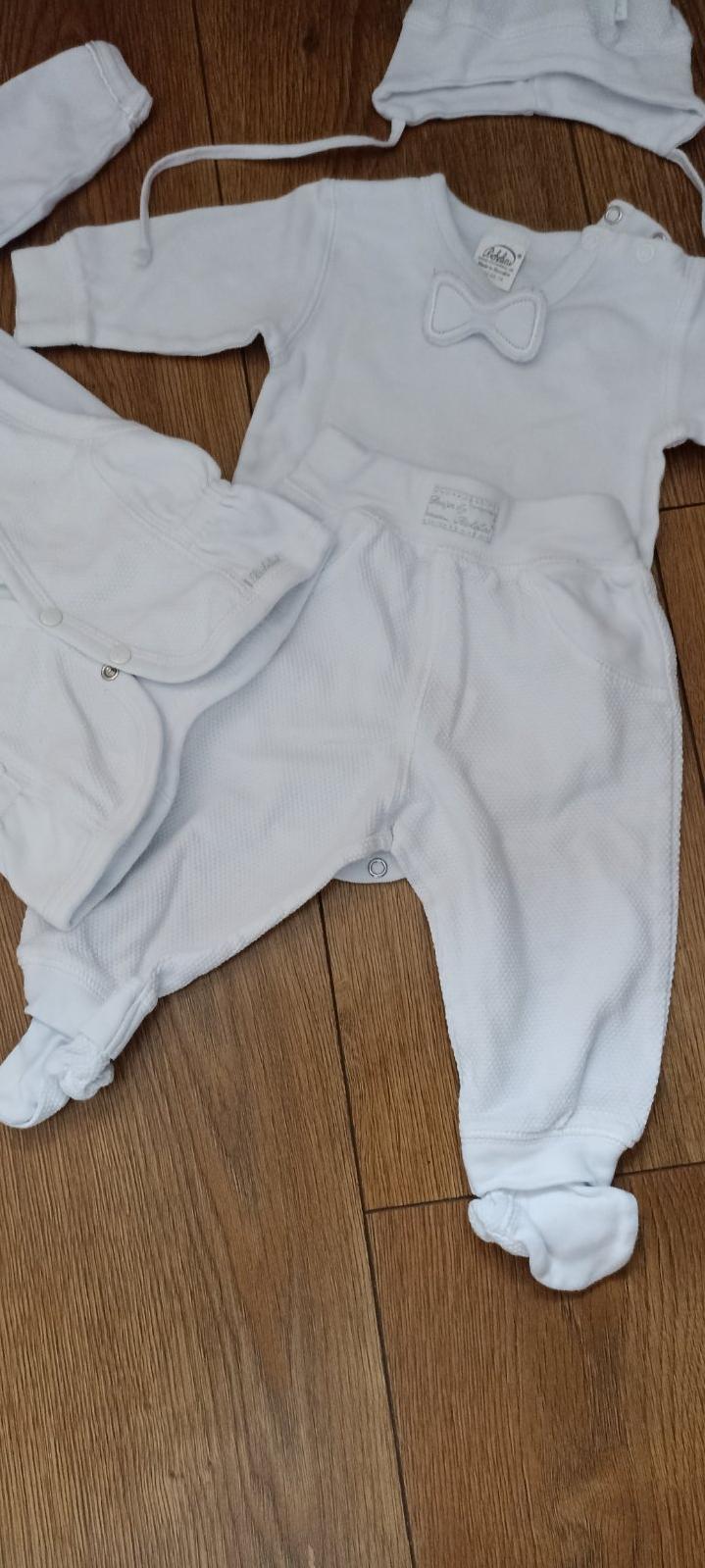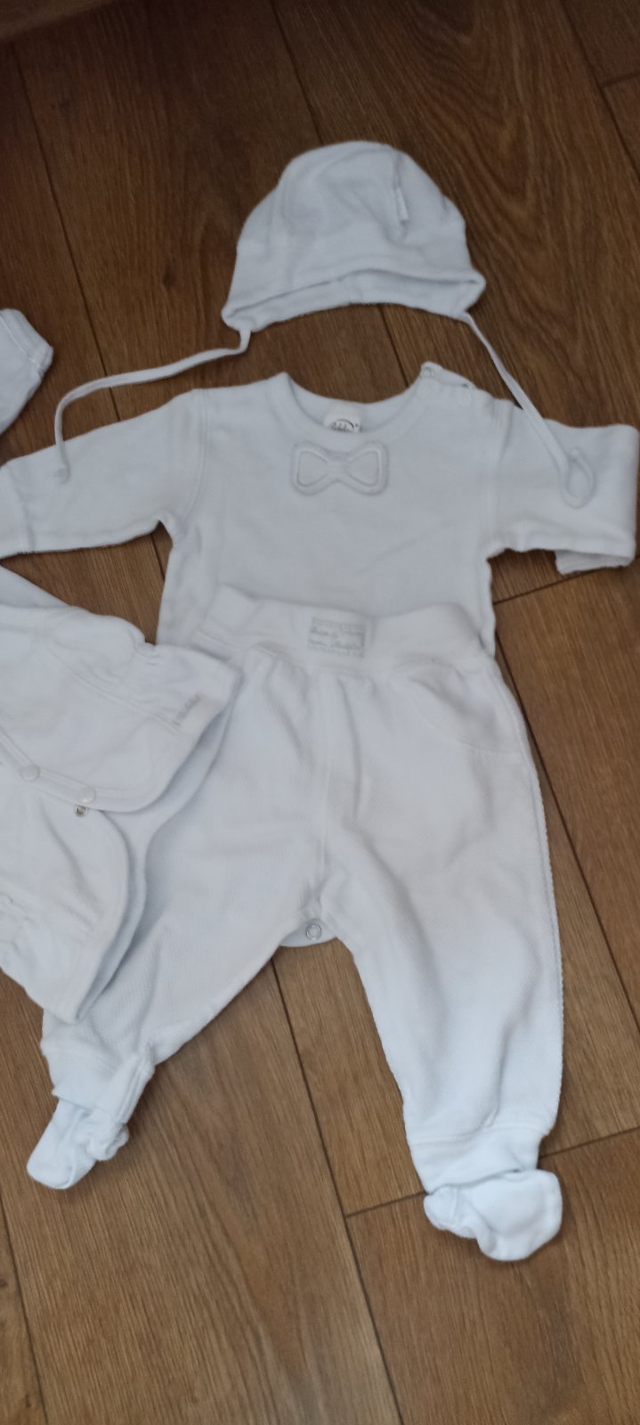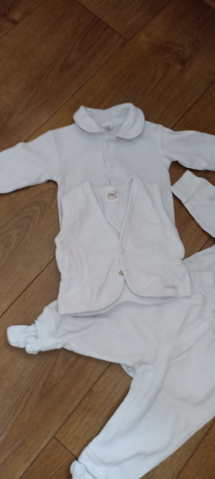 Elegantný, kvalitný set na krst, slovenský výrobca. Obsahuje dvoje body, vestu, dupačky a čiapočku. Je to dvojveľkost 68/74.