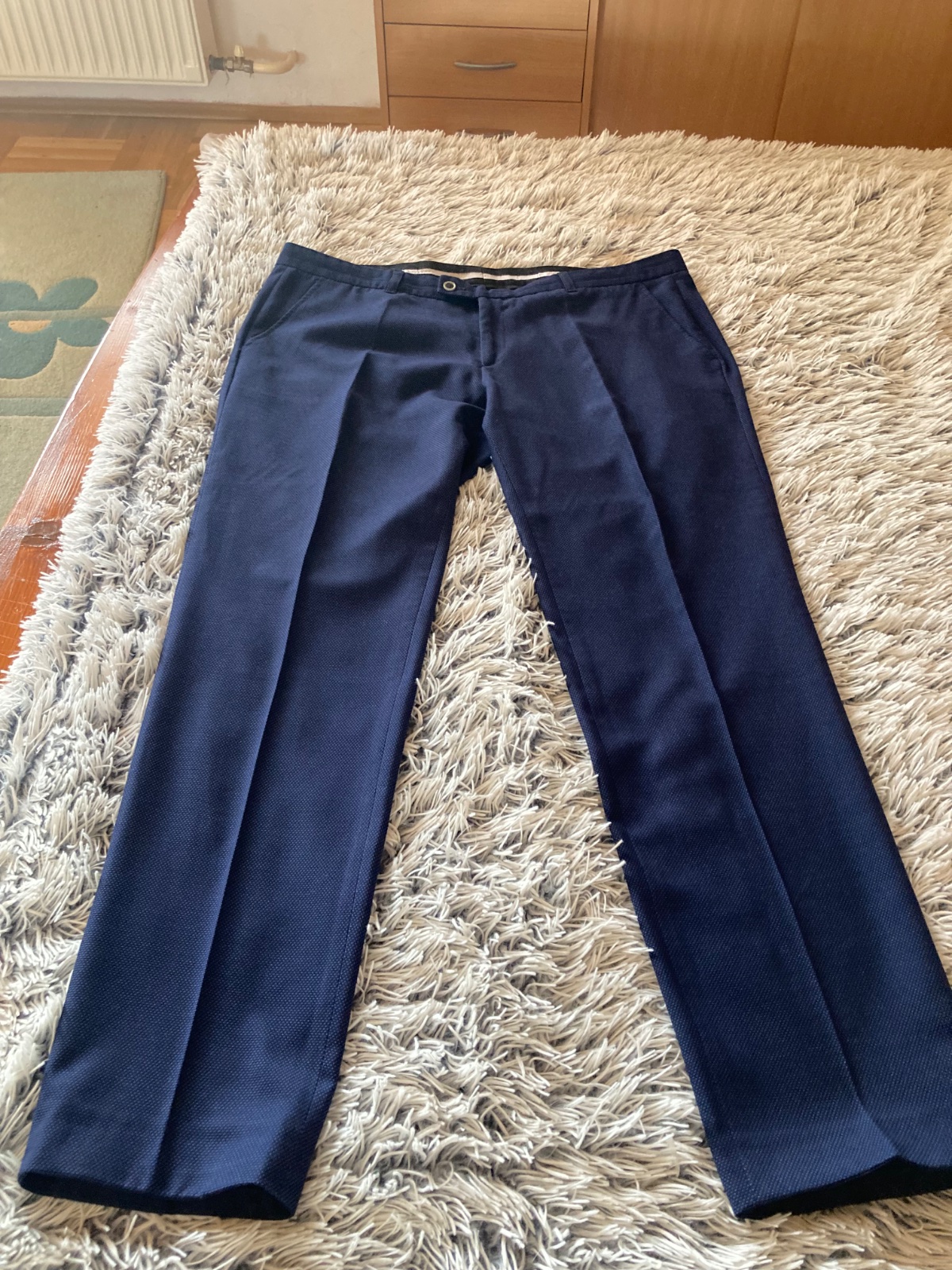 Predám pánsky oblek vo veľmi dobrom stave. Málo použivaný. Miery obleku: obvod hrude- 116cm, obvod pása- 108cm, dľžka- 74cm, dľžka rukáva-65cm.Miery nohavíc: obvod pasa- 102cm, obvod bokov- 124cm, dľžka- 106cm. Cena+ poštovné.