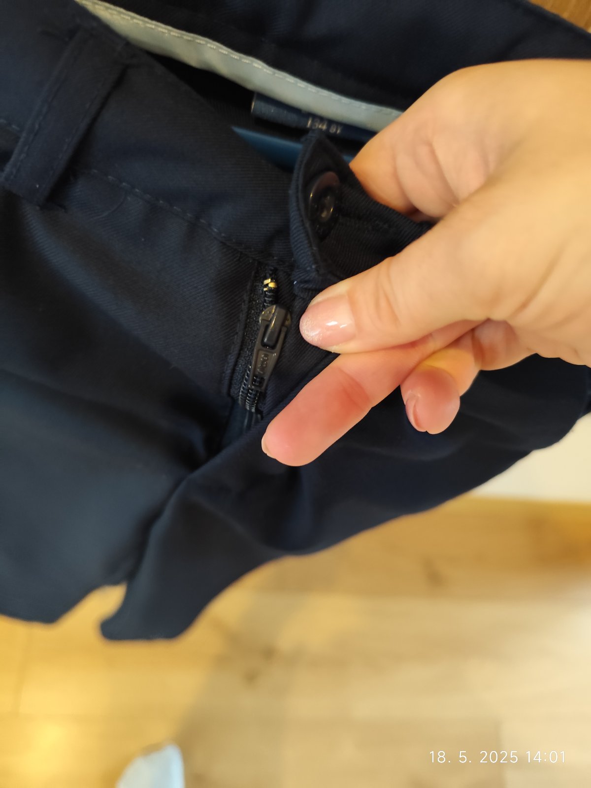 Veľmi dobrý stav Veľkosť uvádzaná 128, ale sú väčšie Pás na zips a gombík, je pevný 30x2cm Dĺžka 79cm