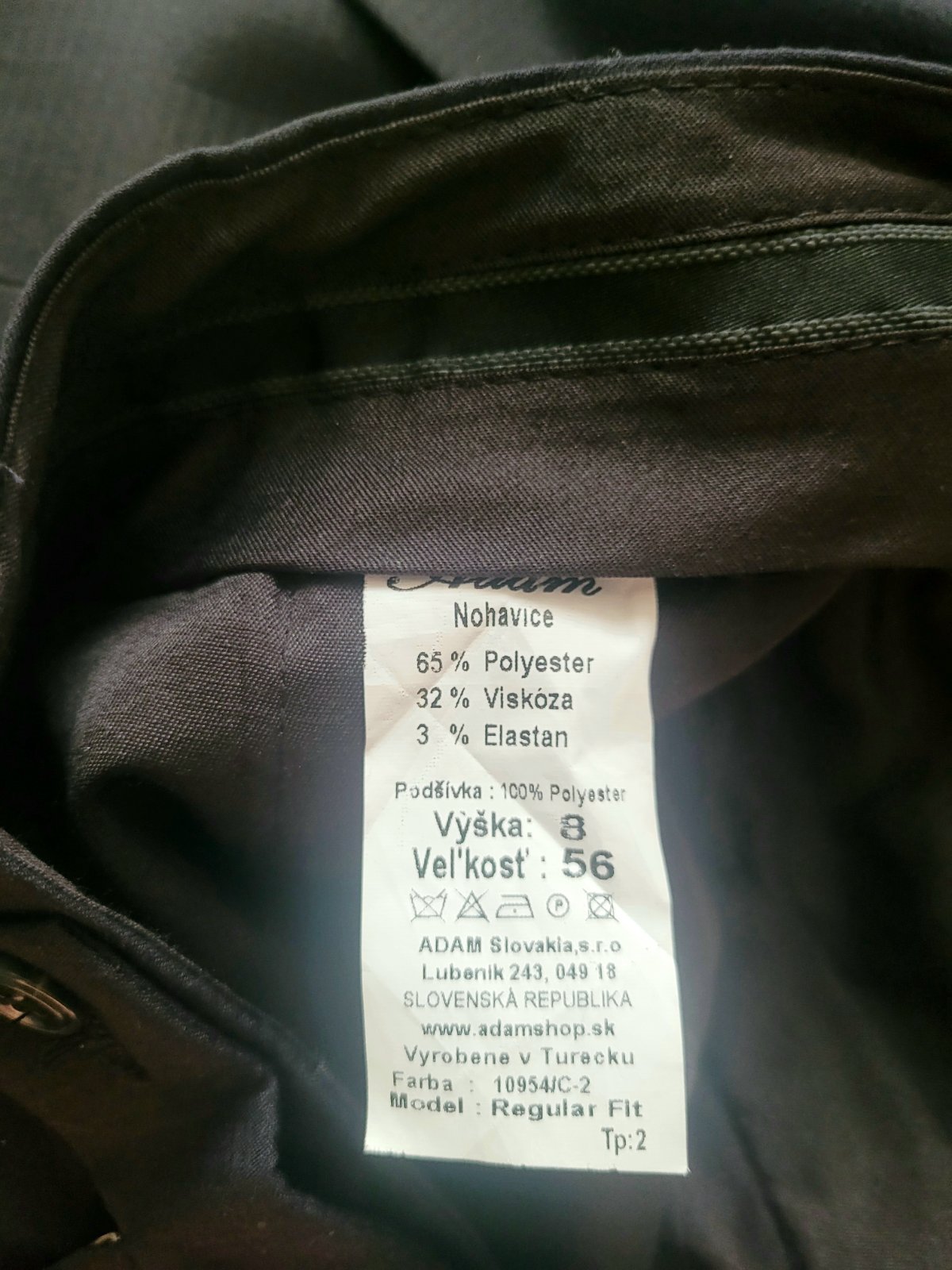 Nohavice: šírka pásu je 49,5cm, bočná dĺžka je 111cm, vnútorná dĺžka je 86cm,dĺžka sedu je 36cm.