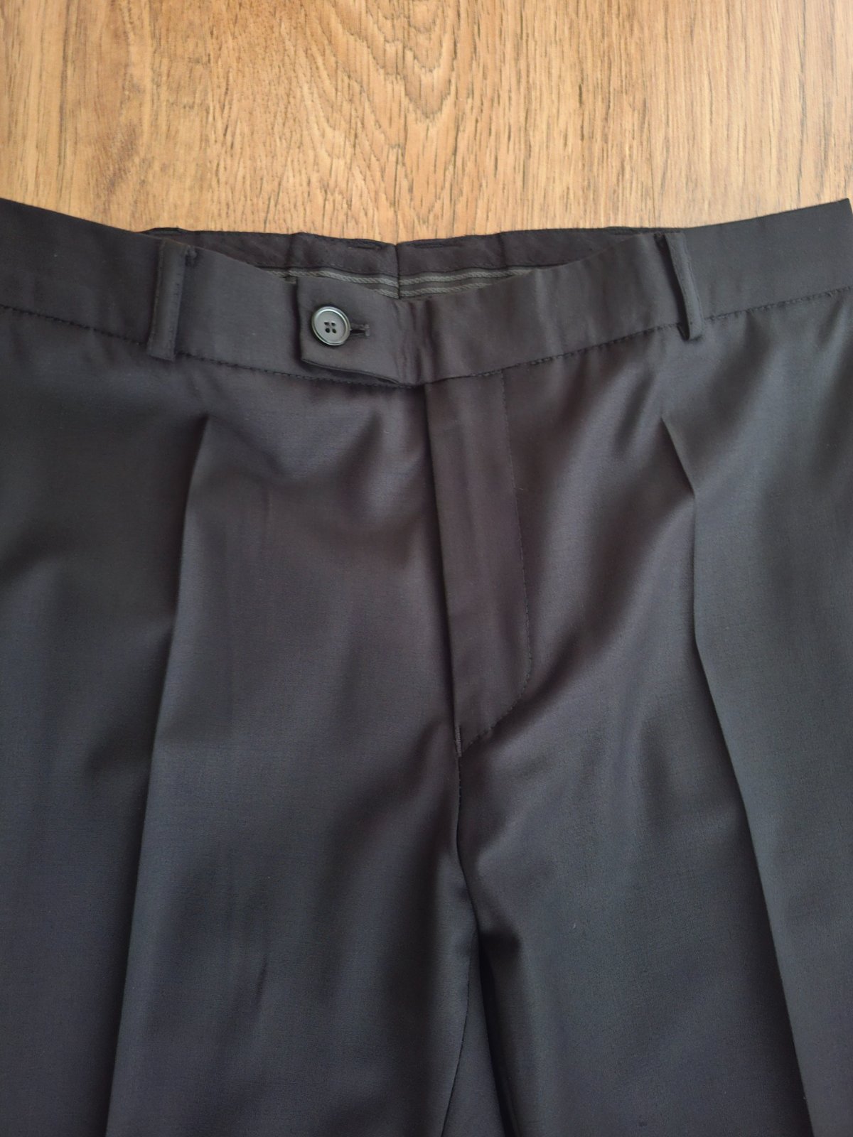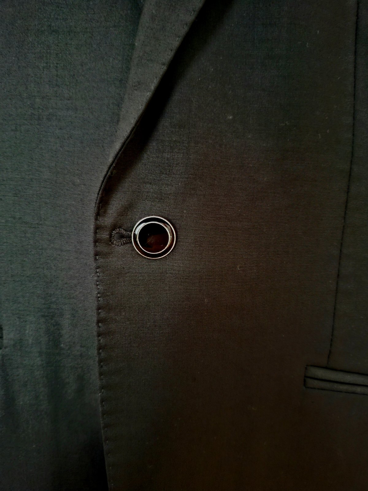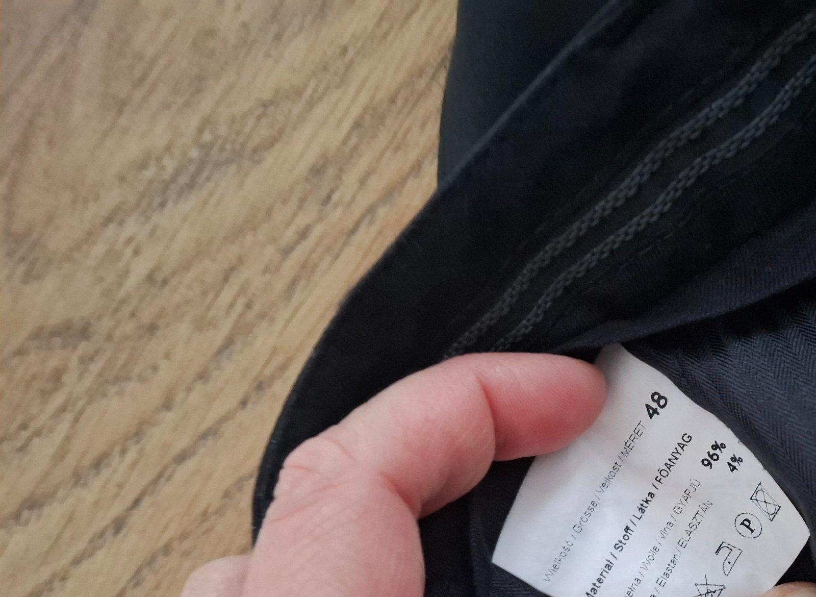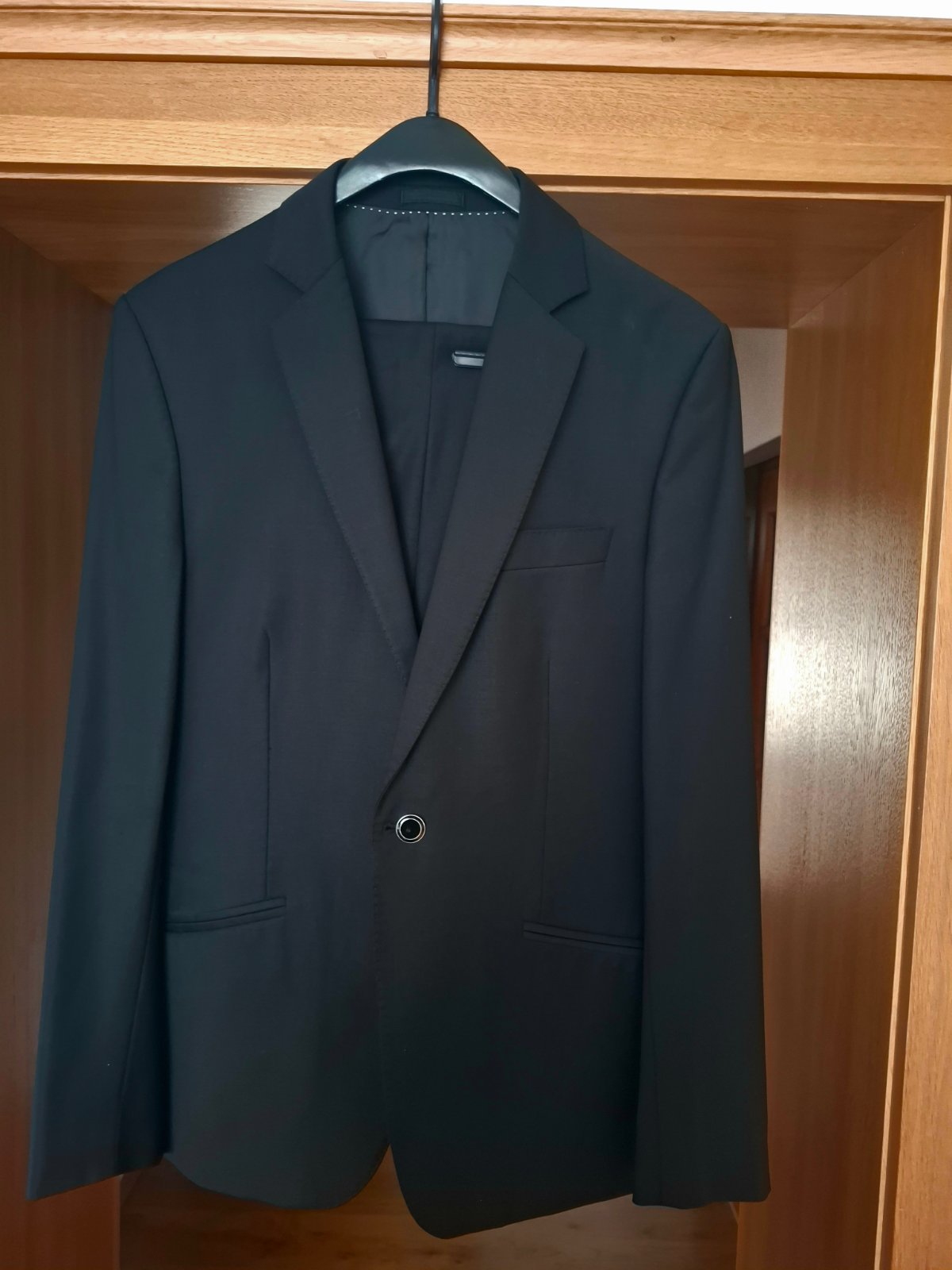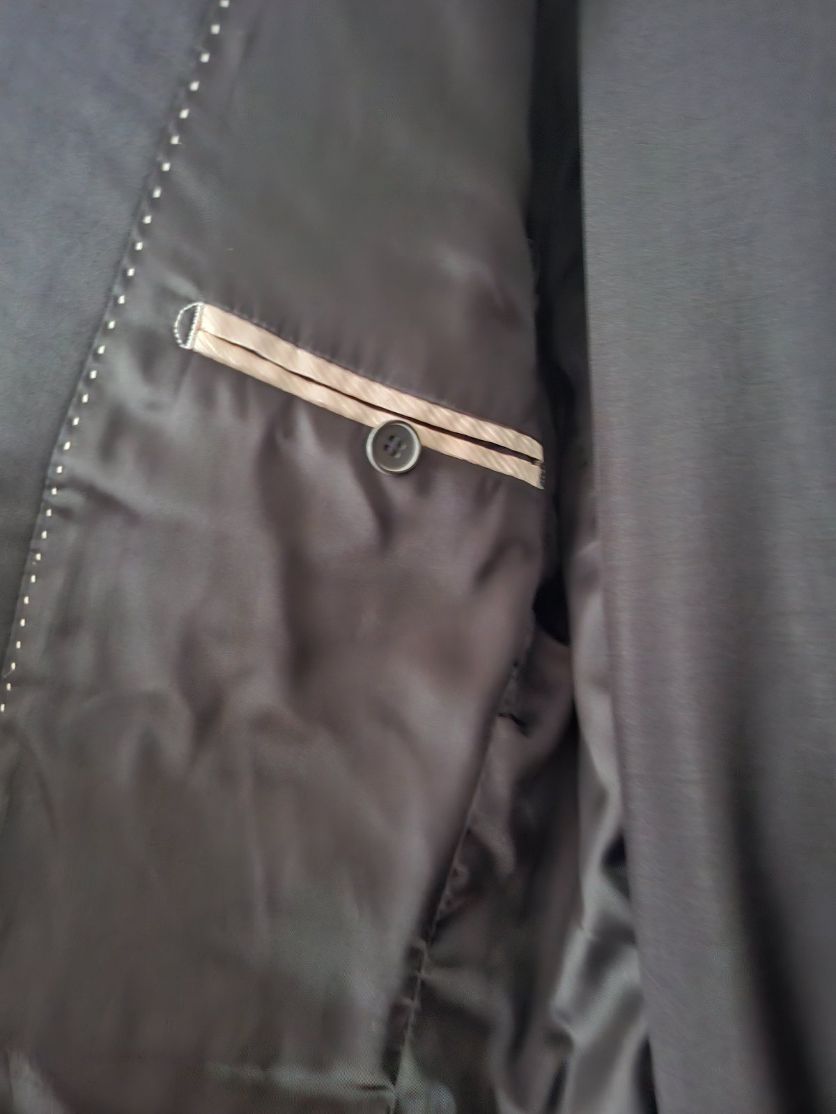 Asi 2x použitý oblek,bez poškodenia!Žltkastý fliačik vo vnútri,viď foto,treba zobrať do čistiarne!Pôvodná cena cca 200 euro.Material :veľmi kvalitná jemná vlna,vyššia rada značky,klasický elegantný strih!Neolutujete kúpu!