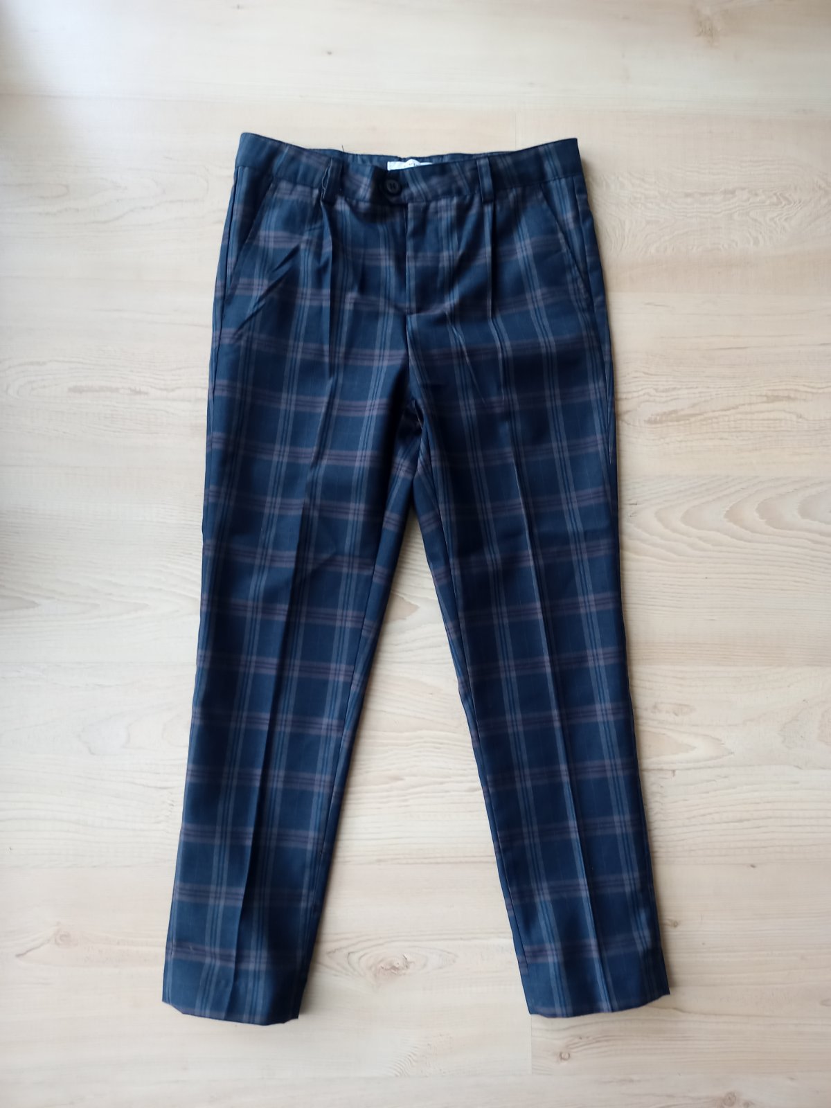 Krasne zamatove sako s karovanymi nohavicami. Sako je zn.Zara, velkost 140 no sedi na 146. Karovane nohavice Reserved, velkost 152 no skor mensie. Je to smrncovne, krajsie ako klasika cely oblek. Vsetko v top stave, oblečené na 1.sv.prijimanie a svadbu. Povodna cena saka 50 Eur a nohavic 30 Eur. Rozmery: nohavice - dlzka 85 cm, sirka v pase 37 cm, daju sa regulovat, je tam stahovacia gumicka / sako - dlzka 57 cm, rukav od ramena 52 cm a sirka v podpazusi 43-44 cm.