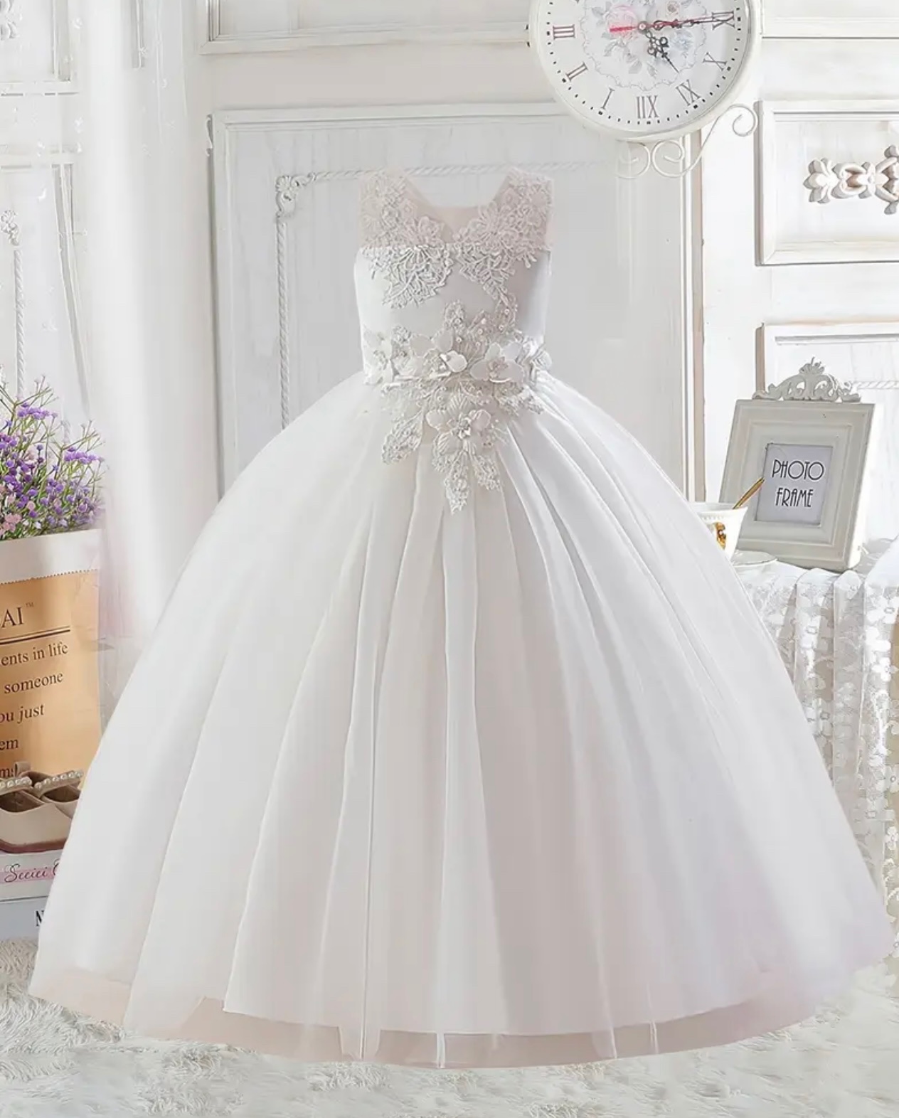 Šaty na prijimanie s kvetmi okolo pasu