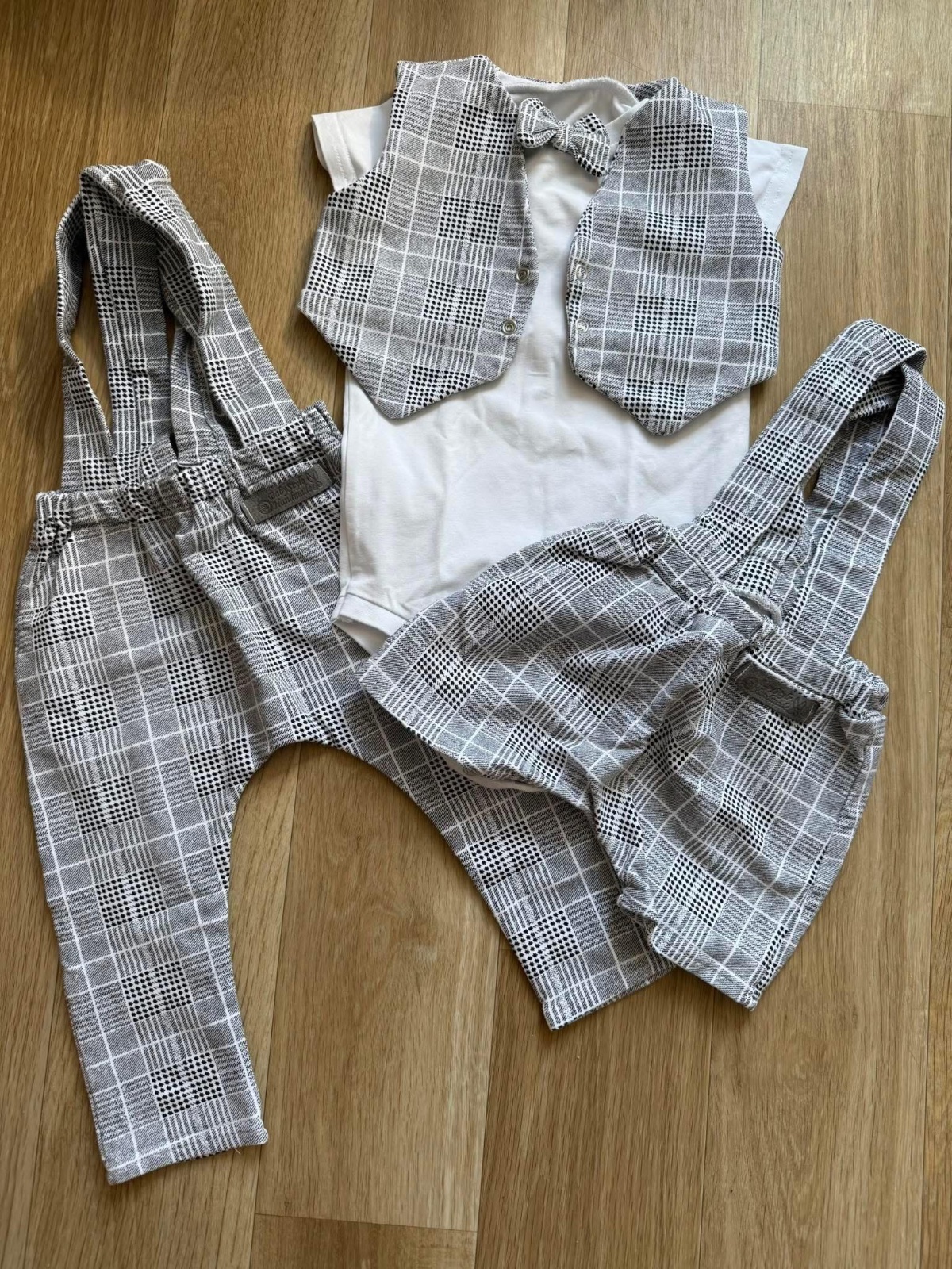 Predám chlapčenský oblek (tenší materiál) na krstiny, uvítanie do života, inú slávnostnú príležitosť. Komplet ako je na foto. Veľkosť: 18-24 mesiacov (80/86)