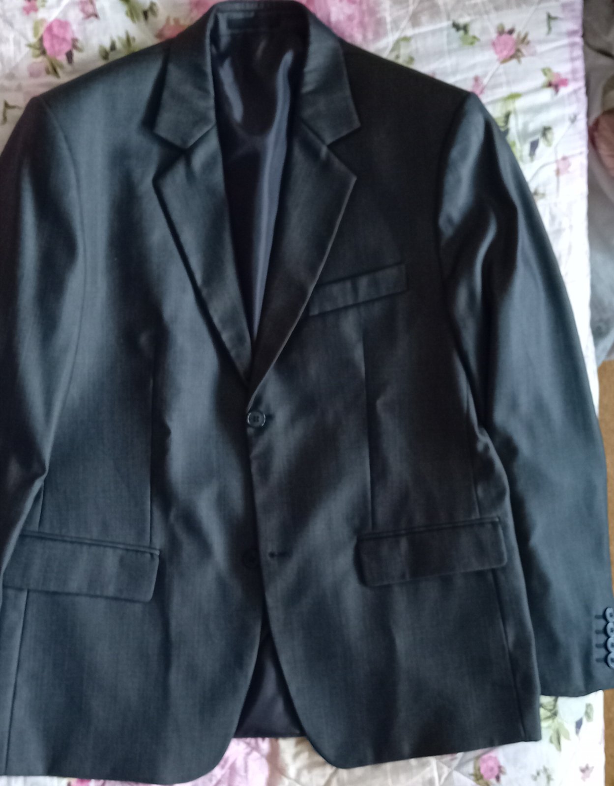 2x oblečený tmavošedý-čierny oblek s jemným prúžkom. Po vyžiadaní poskytnem presné miery.