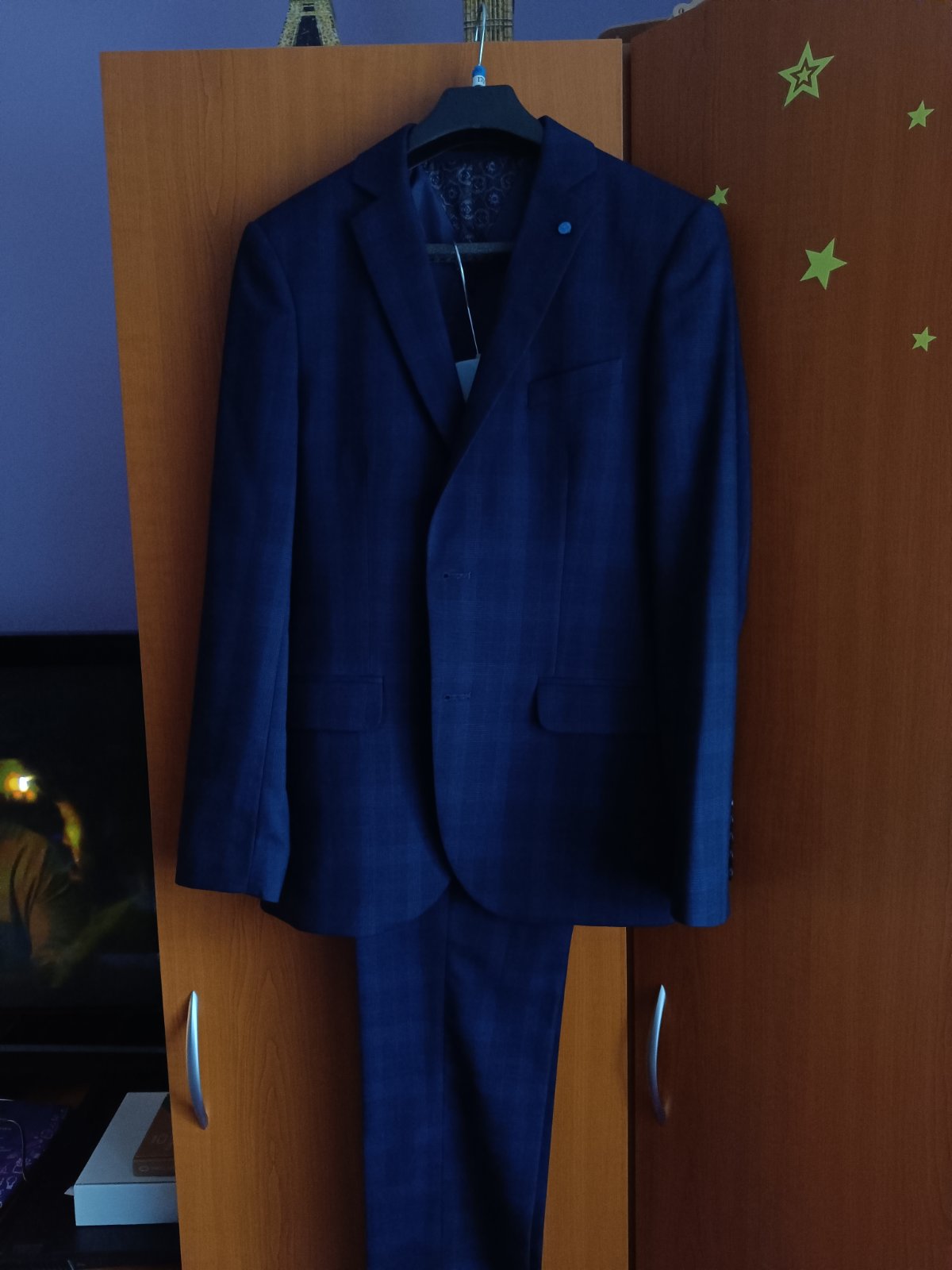 Predám kvalitný oblek, veľkosť 170, vhodný skôr pre štíhleho mladého muža. Oblek bol oblečený 1x (na birmovku). Je ako nový.