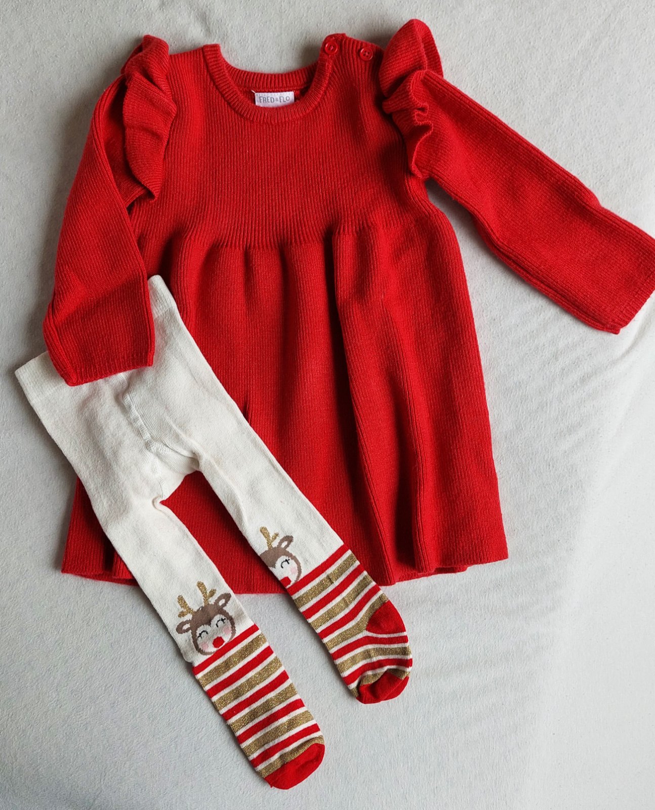 Cerveny makky teply svetrik a pancusky so sobikmi