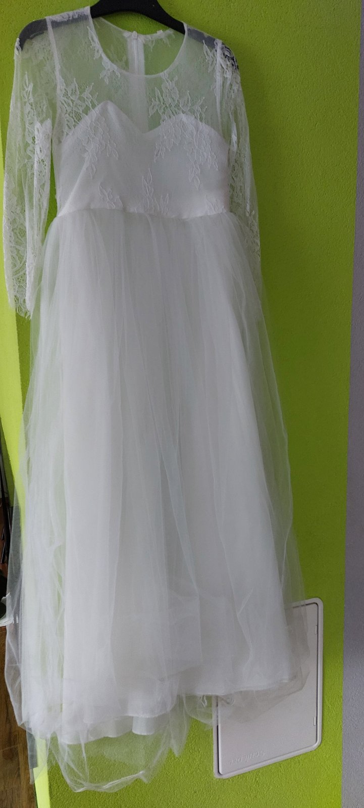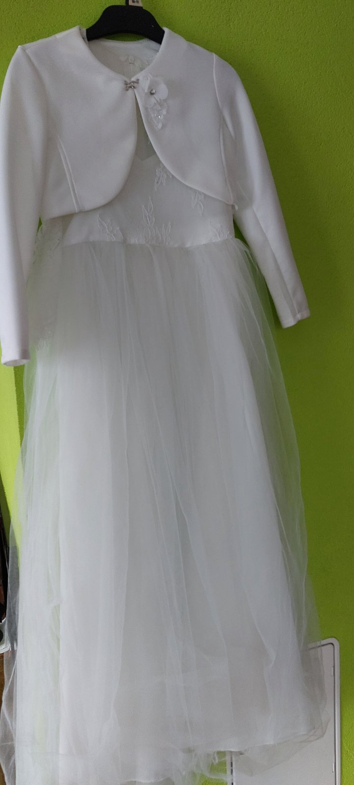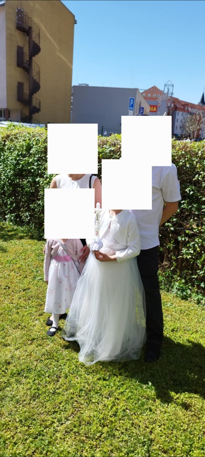 Predám krásne dievčenské šaty na 1.sväté prijímanie, aj s bolerkom. Veľkosť cca 140, dĺžka šiat 120 cm. Dcéra mala 9 rokov keď ich mala oblečené. V skutočnosti sú oveľa krajšie ako zavesené na ramienka.