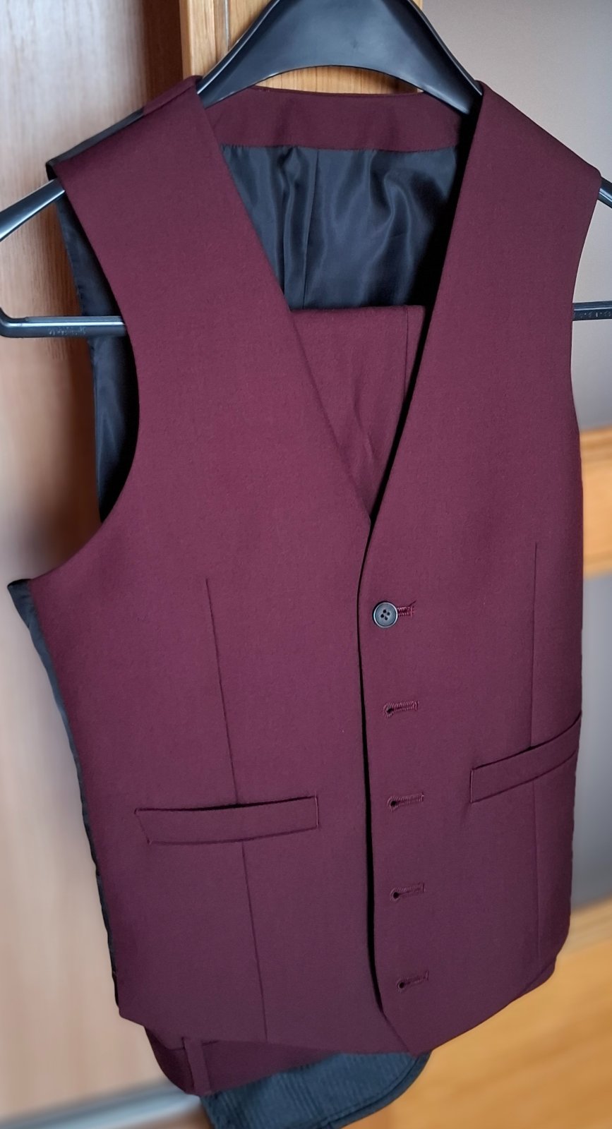 Predám trojdielny bordový pánsky oblek veľkosť 44, cena uvedená aj s poštovným, použitý len na maturite a jednej svadbe.