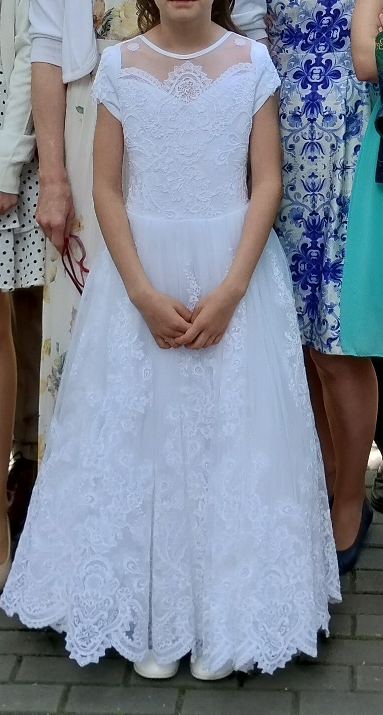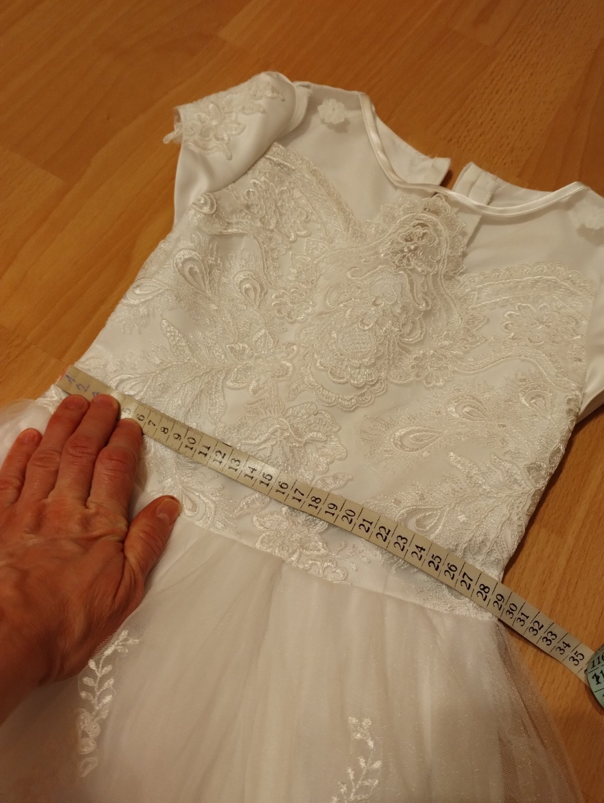 Predám krásne šaty na prvé sväté prijímanie. K šatám je aj bolerko a venček. Celková dĺžka šiat 108 cm, šírka vrchného dielu 29x2 a dĺžka 33 cm.