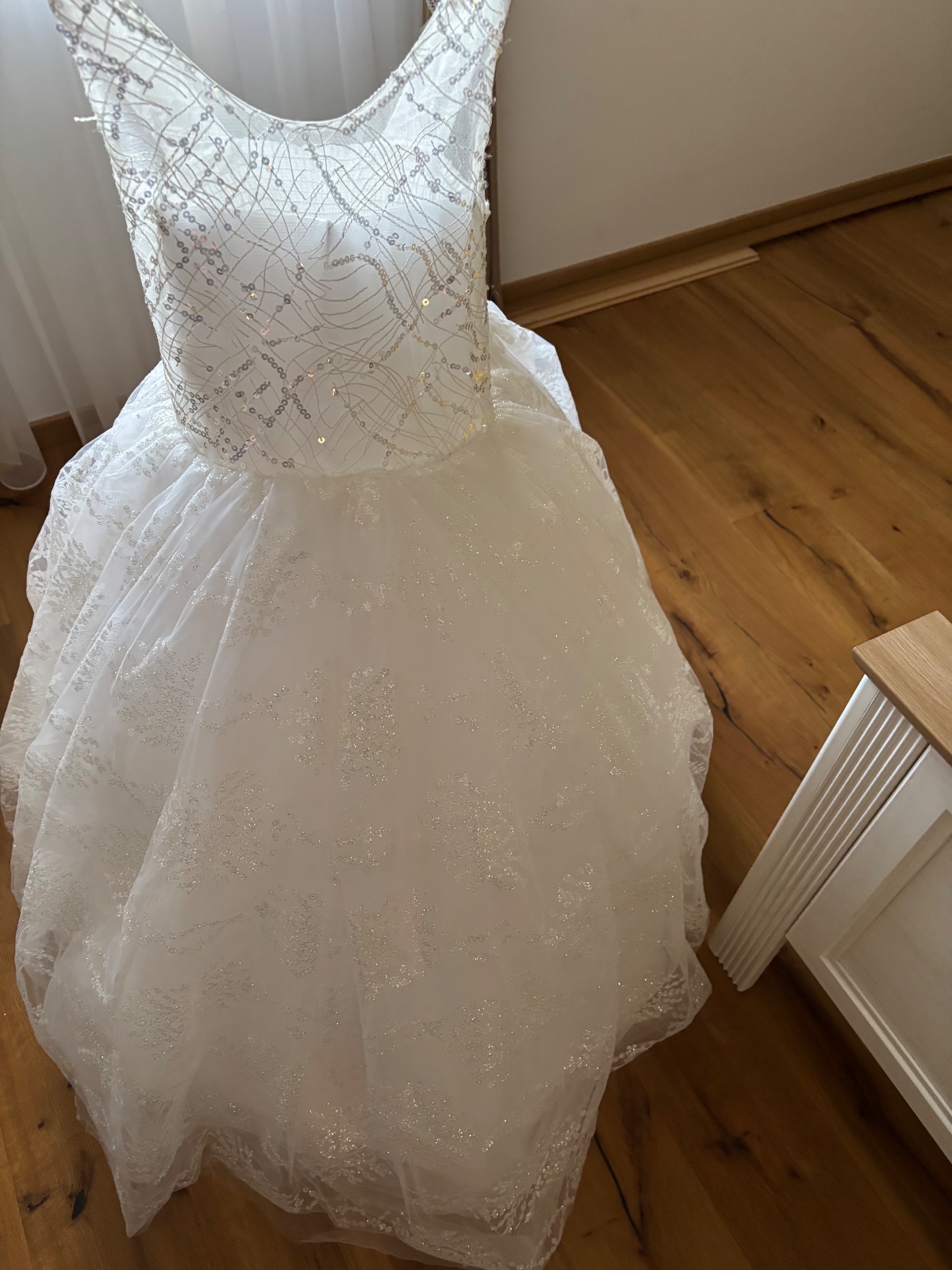 Nádherné nové šaty vhodné na rôzne príležitosti... prvé sväté prijímanie, svadby, birmovku alebo na iné oslavy... Šaty sú ihneď k odoslaniu doručenie je možné do 24 hodín. Nádherné snehobiele šaty...