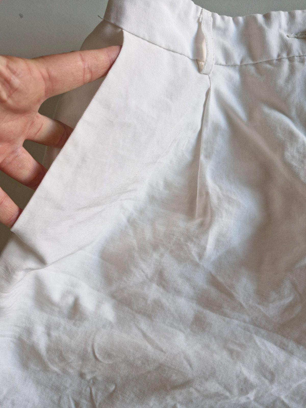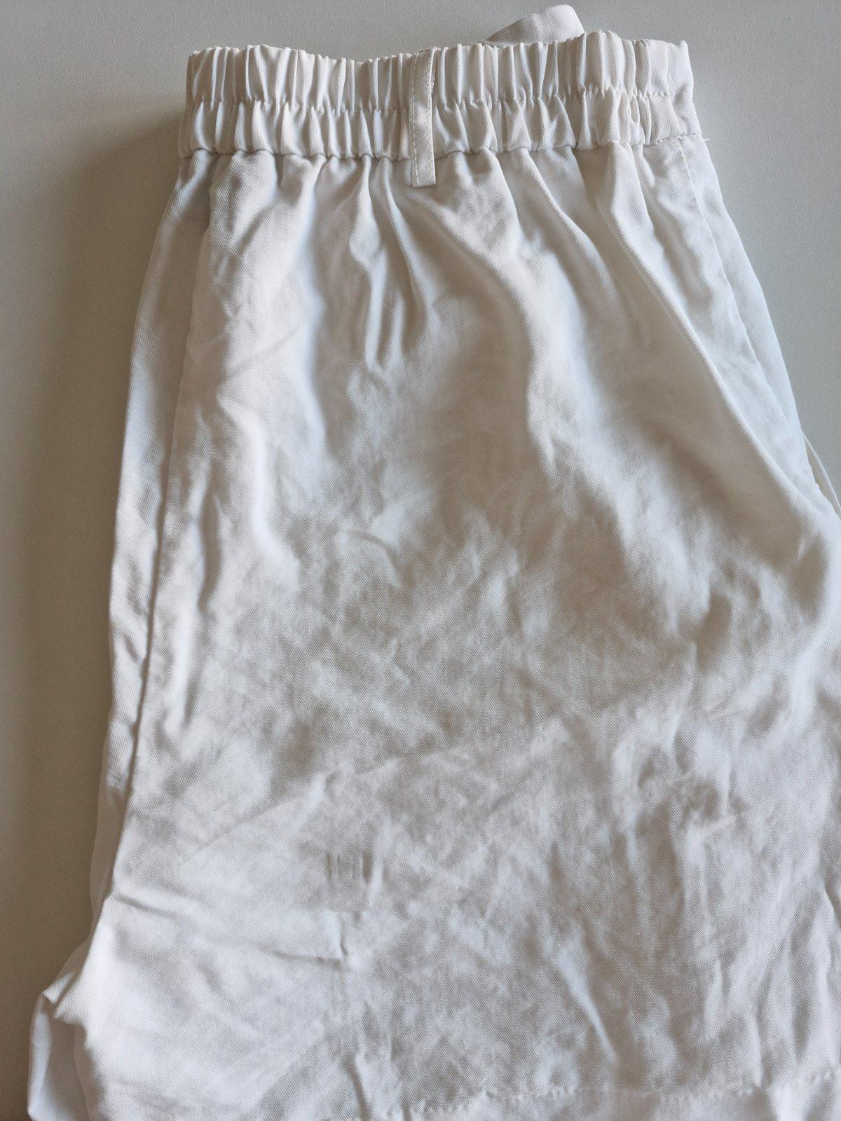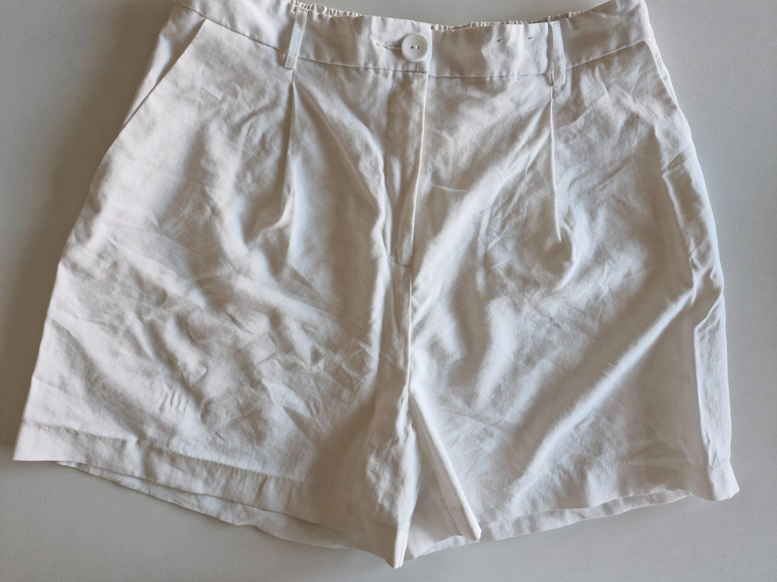 Snehovo biele, kraťasy ci šortky, nepoškodené, 1x oblečene a oprate.. ... Kúpené za 14,99€ v tescu, no nepaznem sa do nich.... Super ukážu na opalenych nohách, rolujú sa na gombík... 100%bavlna......