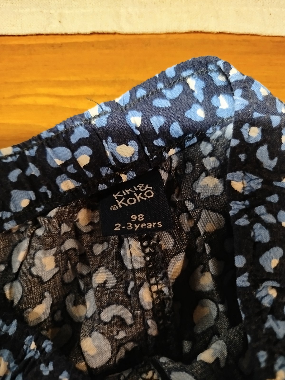 zn.Kiki & Koko, vel.98, cel.d. 43,5cm, od rozkroku 27cm, obvod v pase 25cm x 2 vzadu je guma takze sa prisposobia. ako nove.