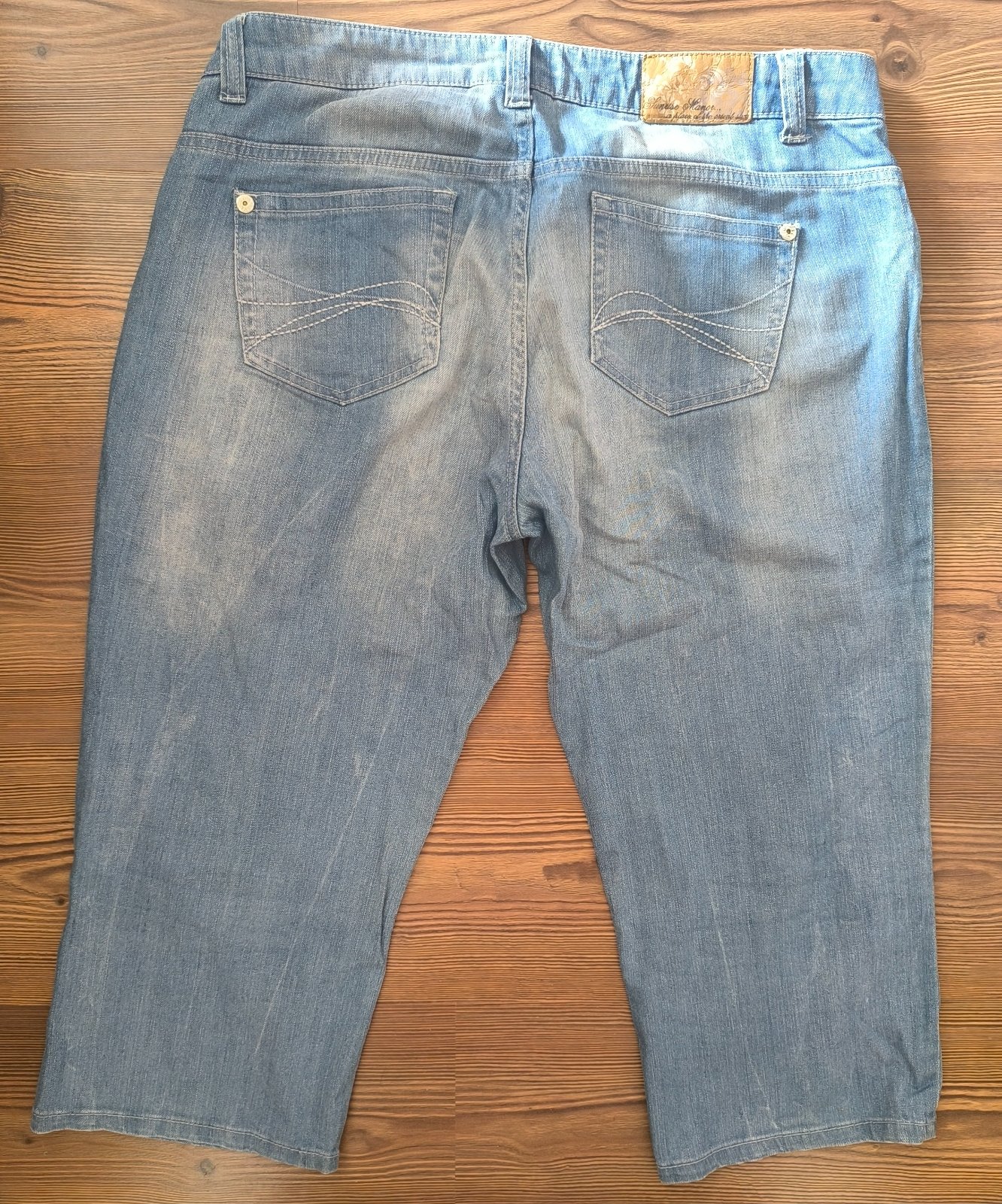 Riflové trištvrťaky Trištvrťáky42Pre dámyIná značkaBledomodrá V nosenom zachovalom stave.Miery v páse 42cmx2. Šírka stehna hore merané pri rozkroku je 36 cm x2.
