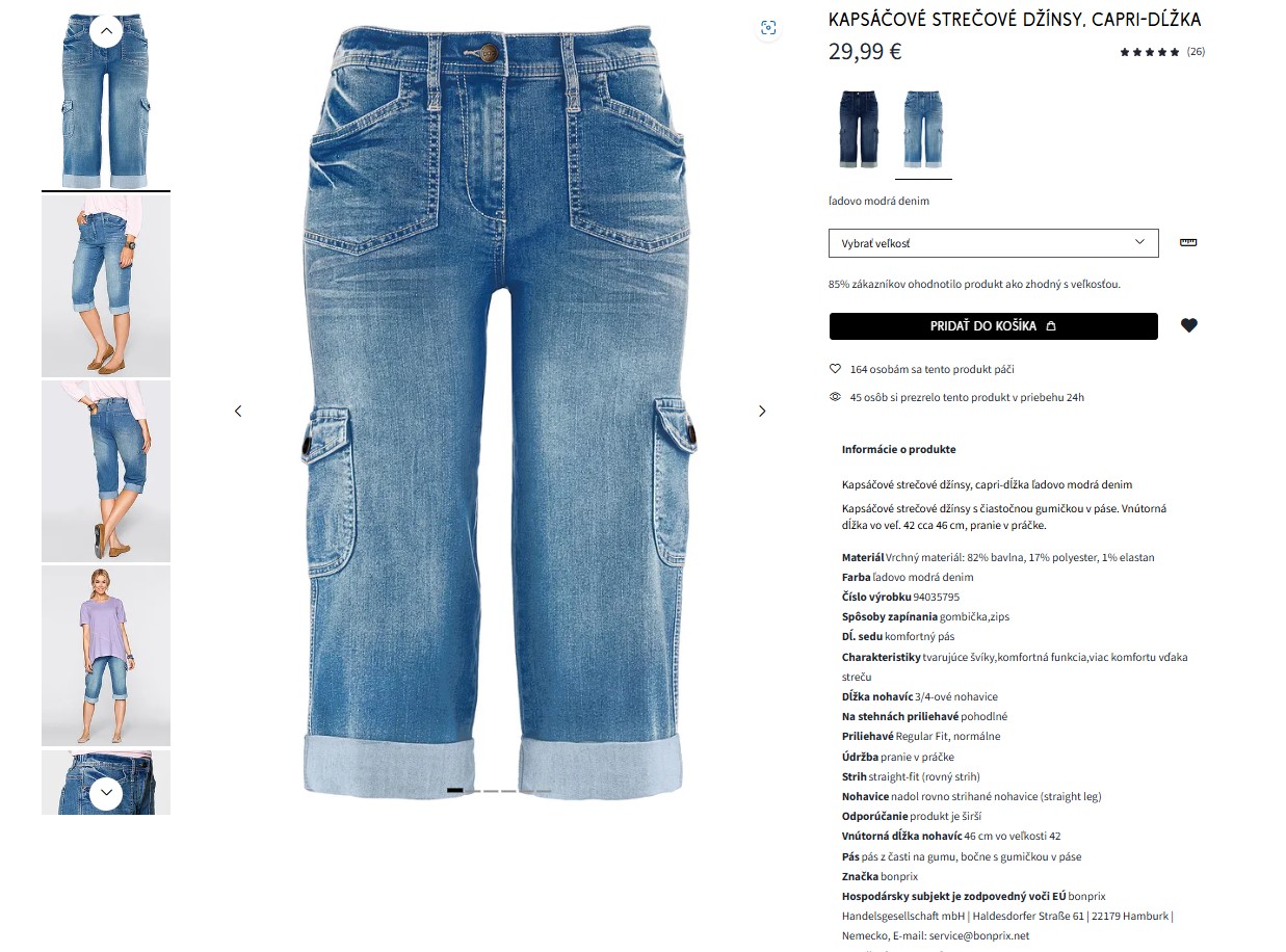 Kapsáčové strečové džínsy, capri-dĺžka