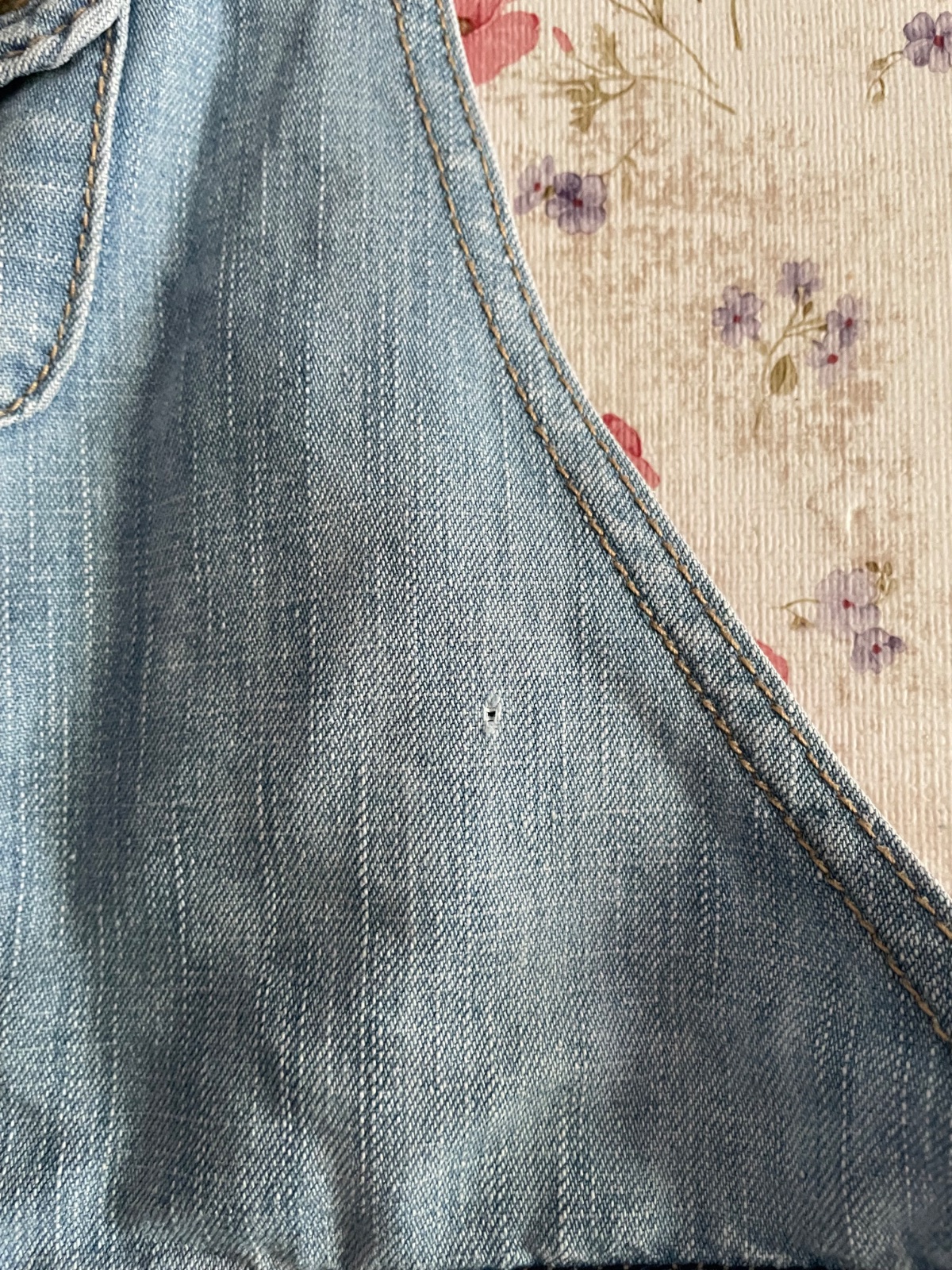 Predám riflové kraťasy s vysednutym vzorom, Bez poškodení šírka 33 cm, dĺžka 40 cm.