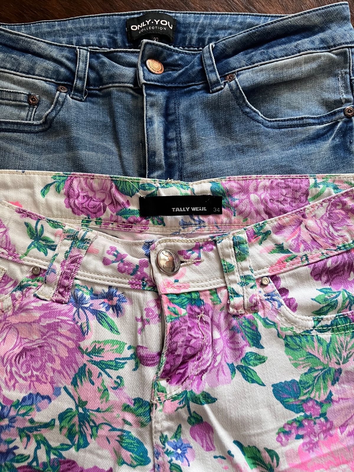 Balík kraťasov ,nosené bez poškodenia. Veľkosť xs 34 (oblečie i chudšie S) sú mierne elastické.