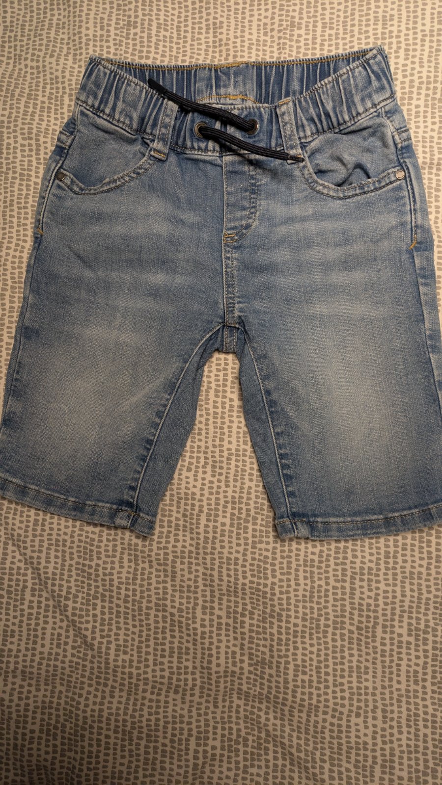 Dzinsove kratsy, top stav nez poskodeni, pas na gumicku, vel 122