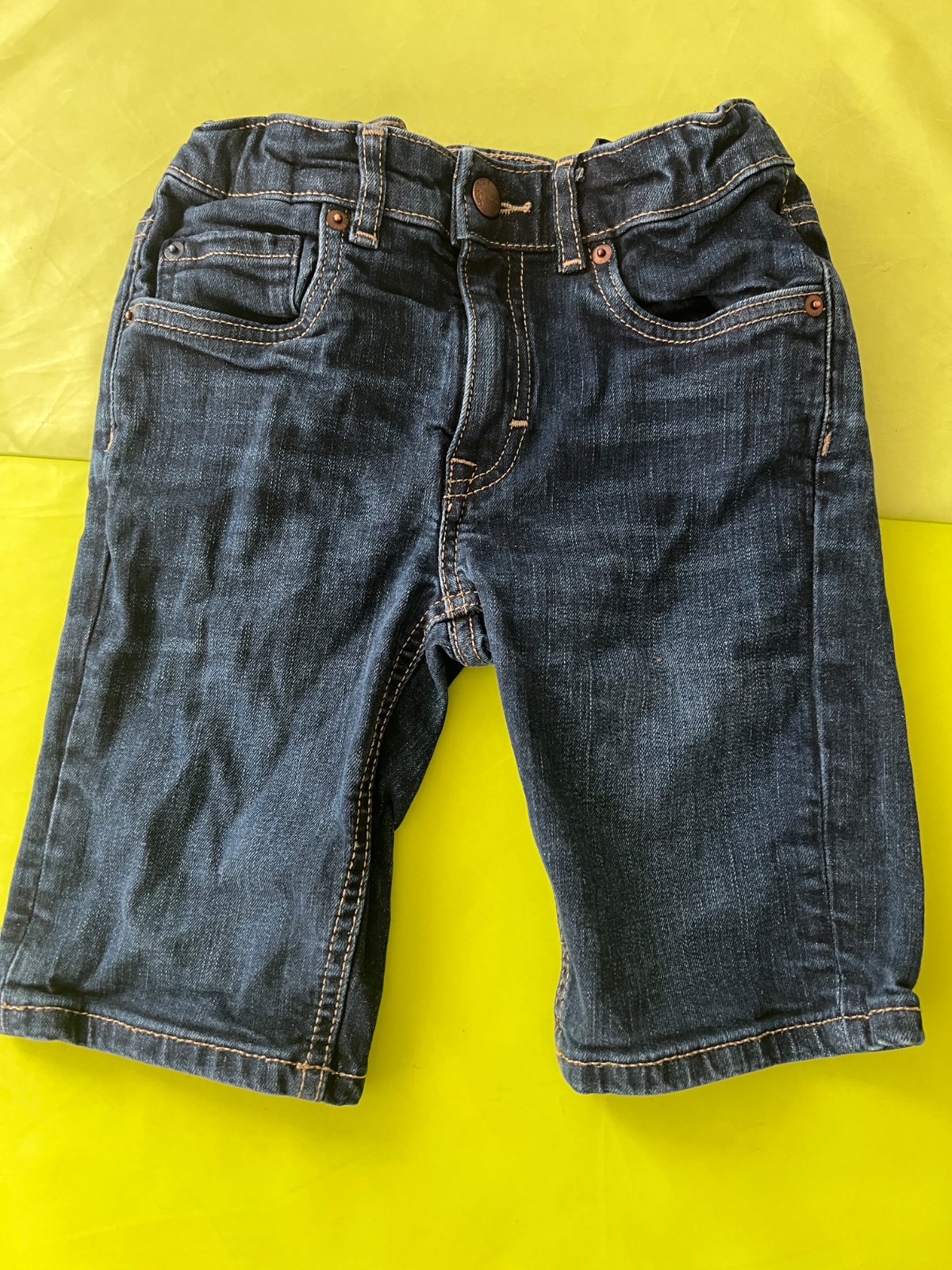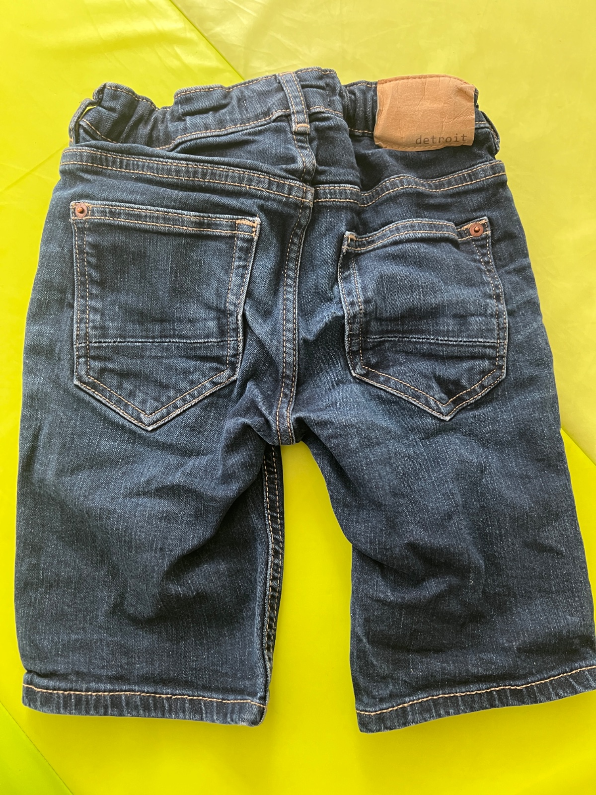 Kratasky su z pevnej rifloviny ale nosenim sa uvolnia a pranim znova stiahnu. Jedine poskodenie je zlty smuh na jednej nohavici. Zapinanie je na cvok a zips a v pase je regulacna guma. Rozmery na f...