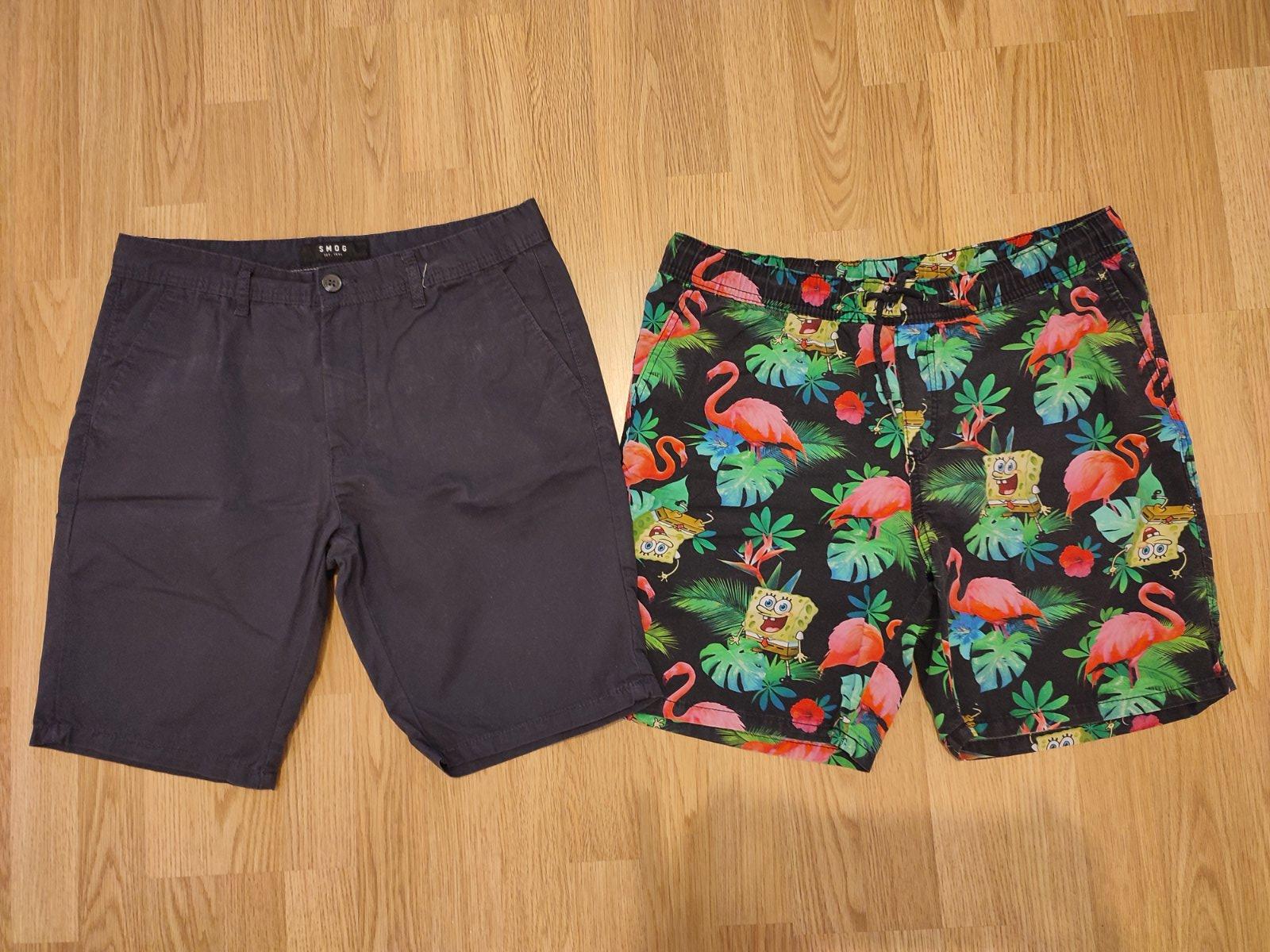 Predam dvoje kraťasy, skôr taký plátnovy ľahší materiál, bez poškodení. Sú tak do pol stehna pri výške cca 175 cm. Cena spolu